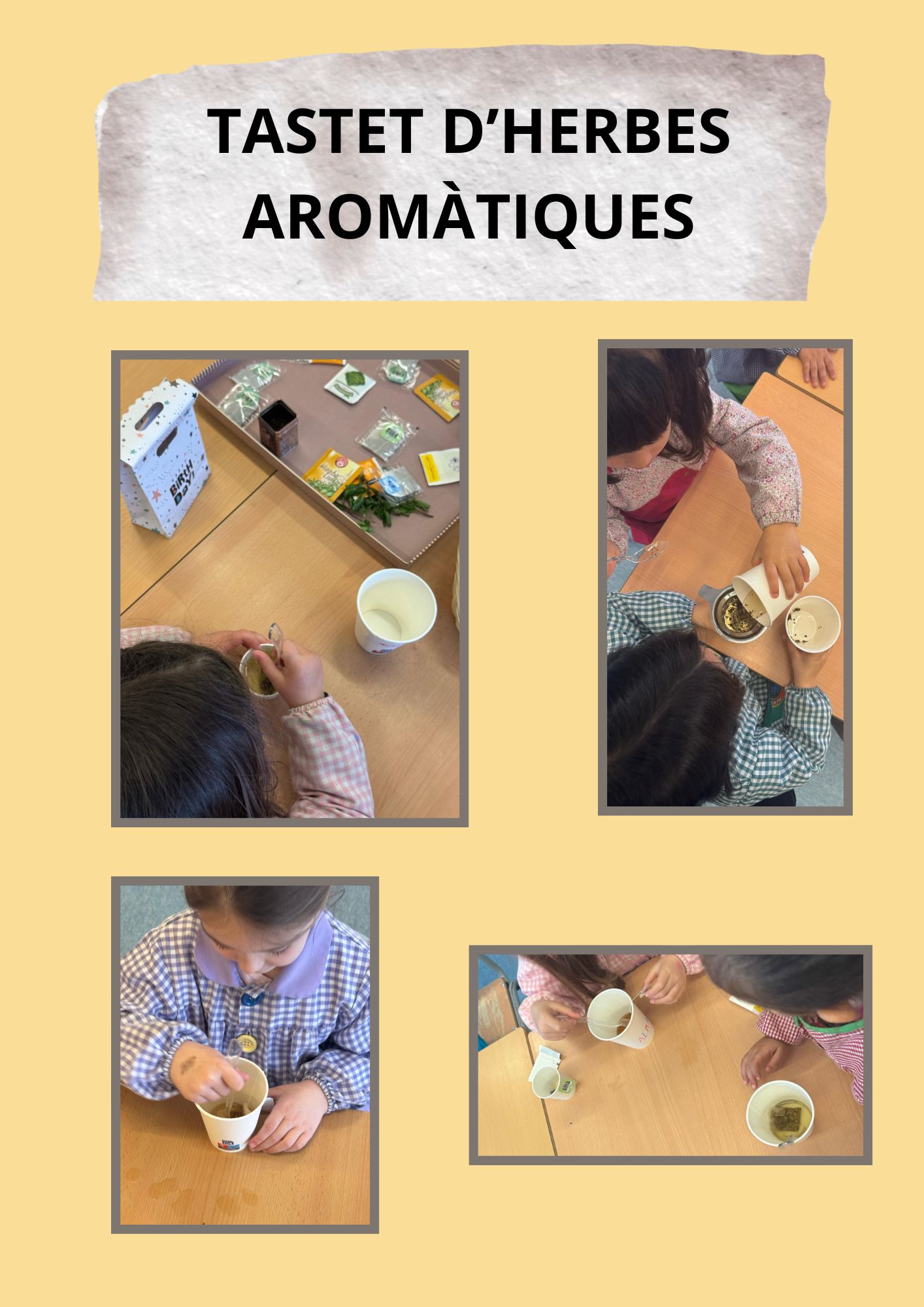 Els nens i nenes d’I4 han fet un tastet molt especial: han pogut descobrir diverses plantes aromàtiques a través d’infusions. Han observat, olorat i tastat, infusions de menta, camamilla, farigola… Ha estat una activitat sensorial molt enriquidora que els ha permès connectar amb la natura i ampliar el seu coneixement del món que els envolta. A través del joc i l’experimentació, han expressat sensacions, han fet hipòtesis i han gaudit d’un moment compartit ple de descobertes.
