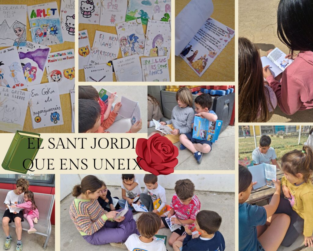 Com sabeu, des de l’escola donem molta importància al vincle i la relació que hi ha entre padrins i fillols. Per aquest motiu, l’alumnat de Cicle Superior hem aprofitat la Diada de Sant Jordi per crear un conte personalitzat per als nostres fillols o filloles i regalar-els-hi en un dia tan especial.