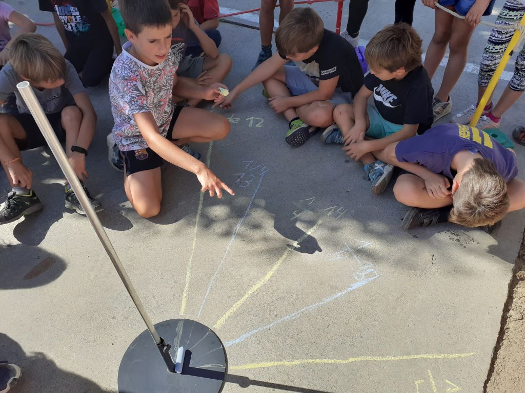 “Les ombres que ha anat fent el gnòmon que hi ha a Catalunya, serien iguals que el gnòmon gran que hem col·locat al pàrquing, però més llargues!”