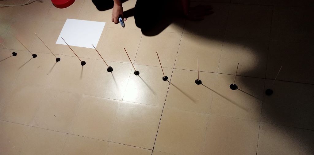 Poder visualitzar el canvi en l’ombra d’un gnòmon, controlant la font de llum, ajuda a reflexionar sobre el que podrà passar si el posem a l’exterior i hi toca la llum del Sol al llarg d’un dia.