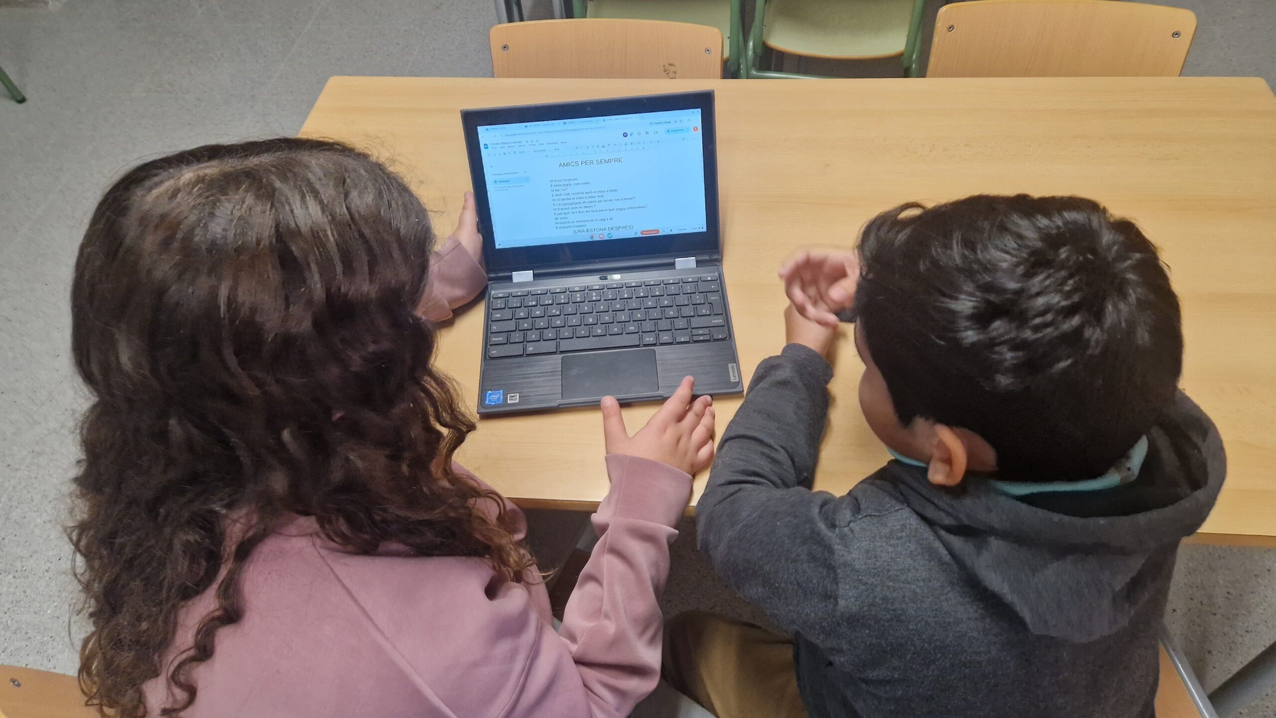 Cada infant ha tingut l’oportunitat de conversar, escoltar i explicar-se amb diferents companys i companyes, tot millorant la fluïdesa i la confiança a l’hora de parlar en públic. Han representat una obra teatral a través d’una videotrucada entre dos amics o amigues que viuen en llocs diferents.