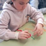 Els nens i nenes de 1r emprenem l’aventura de cosir. La costura ens ajuda a millorar la nostra psicomotricitat fina; la coordinació ull-mà; a part de reforçar la nostra creativitat; concentració i paciència. A l’escola, aprofitem l’espai de l’expressió plàstica per fomentar la presa de decisions autònoma, explorar amb materials lliurement i millorar l’autoestima.