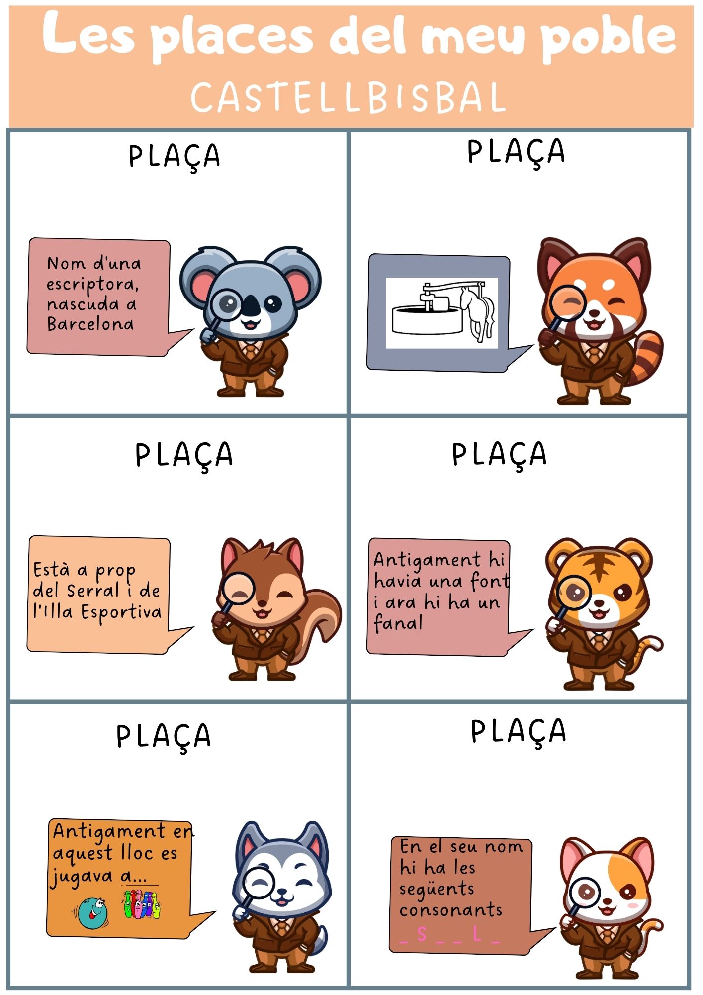A 3r estem fent el projecte sobre el nostre poble. Ja hem après força i ara estem preparant un treball sobre algunes de les places que tenim al nucli antic i els seus noms. Visitarem sis places, cada grup cooperatiu s’encarrega de presentar aquella plaça i prepara un petit joc. També hem pensat que deixarem una petita empremta. Si passeu per alguna d’aquestes places potser, la trobeu.