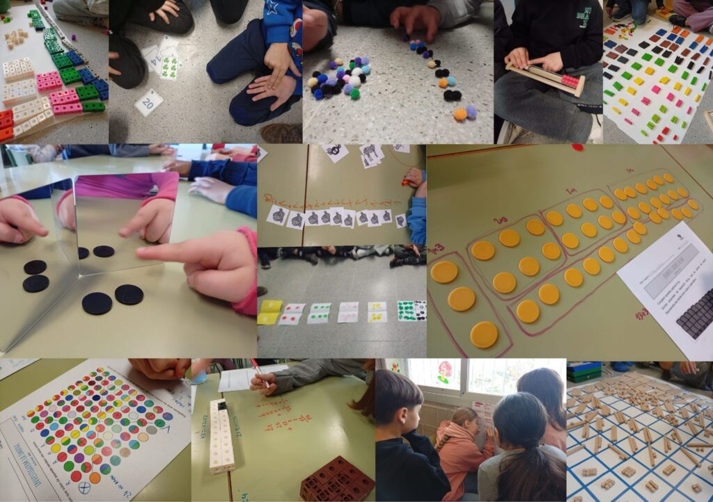 Per fer-ho hem estat treballant en el desenvolupament de diferents estratègies de càlcul amb material manipulatiu que, a través del raonament, ens ha ajudat a fer el pas al pensament abstracte.