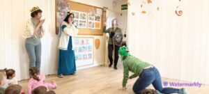 Hem anat a l’escola bressol on ens han representat la llegenda de Sant Jordi i també hem gaudit amb els infants de l’escola bressol jugant una estona tots plegats. Els nens i nenes de P4 han explicat el conte de “l’Aprenent de bruixot” als petits de l’escola bressol i a l’alumnat de P-3.