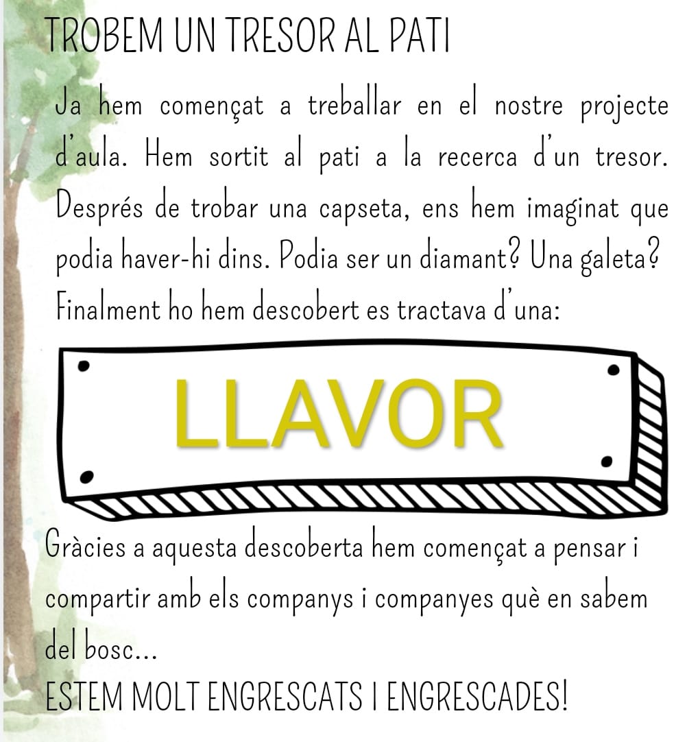 INICIEM EL NOU PROJECTE D’AULA “EL BOSC” Feu un comentari / Per admin / 26 de setembre de 2024 / General I4 i I5 Infantil Portada Per veure les imatges clica AQUÍ