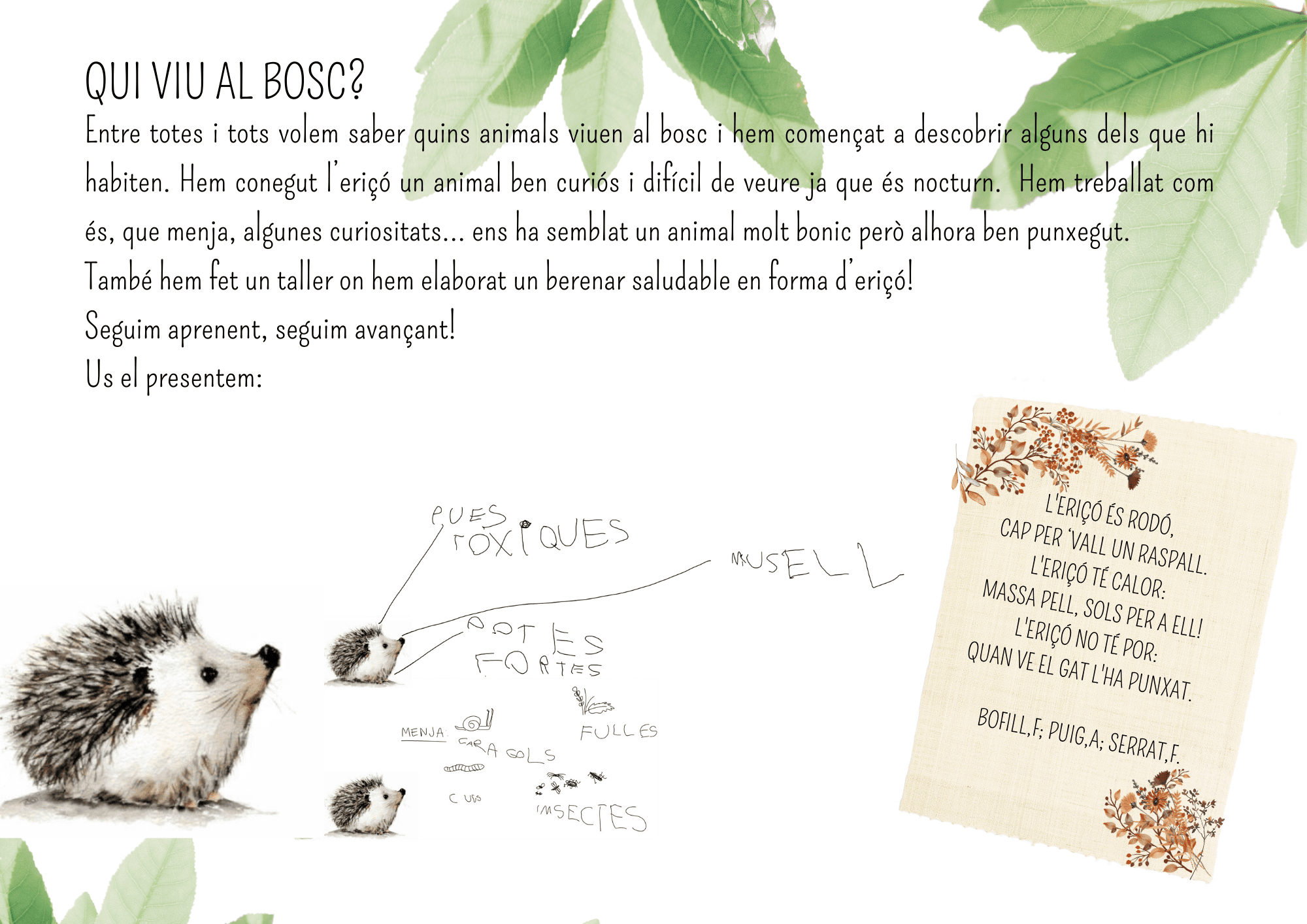 QUI VIU AL BOSC? Feu un comentari / Per admin / 30 d'octubre de 2024 / General I4 i I5 Infantil Portada Per mirar algunes de les imatges entreu AQUÍ.