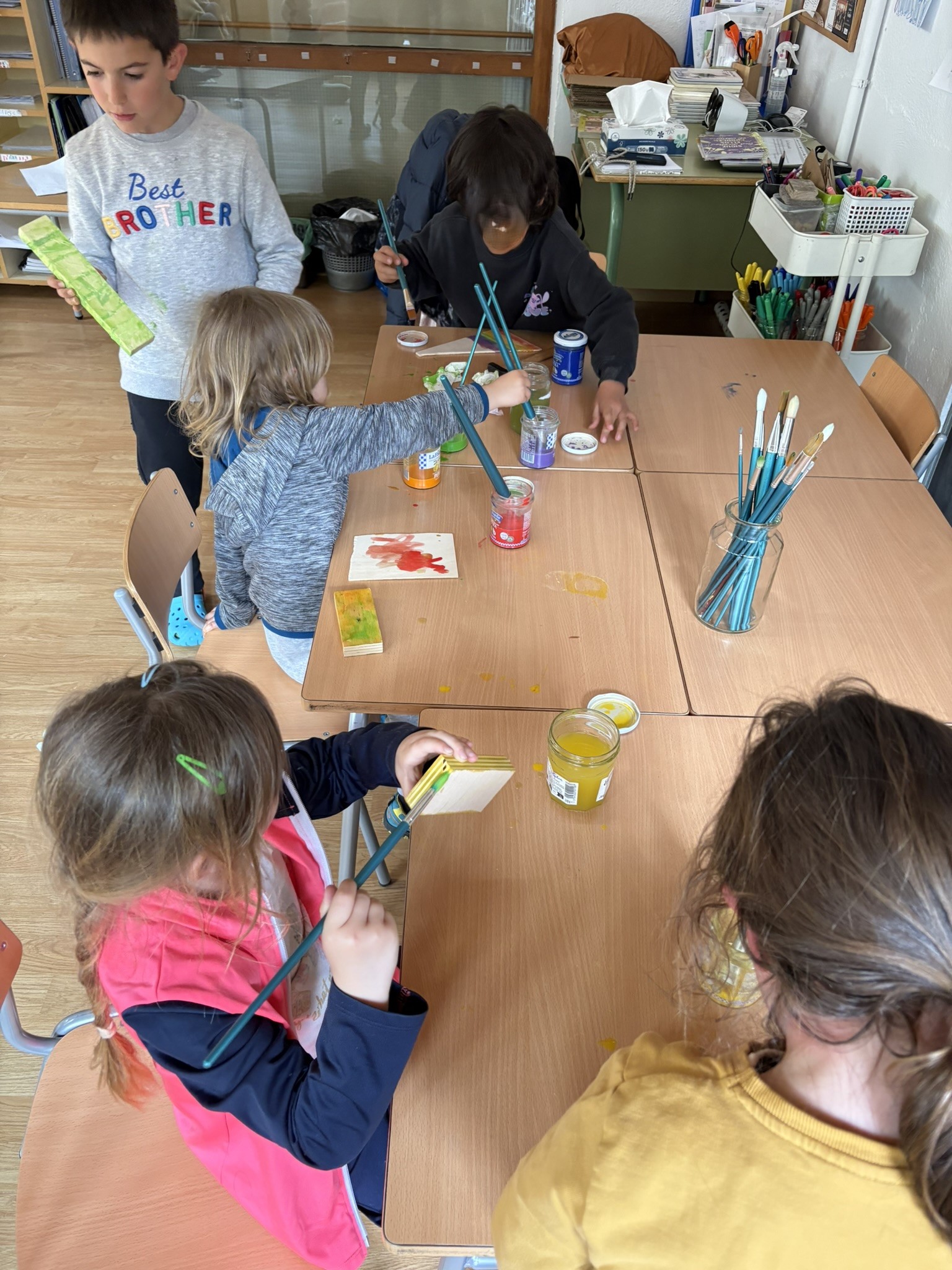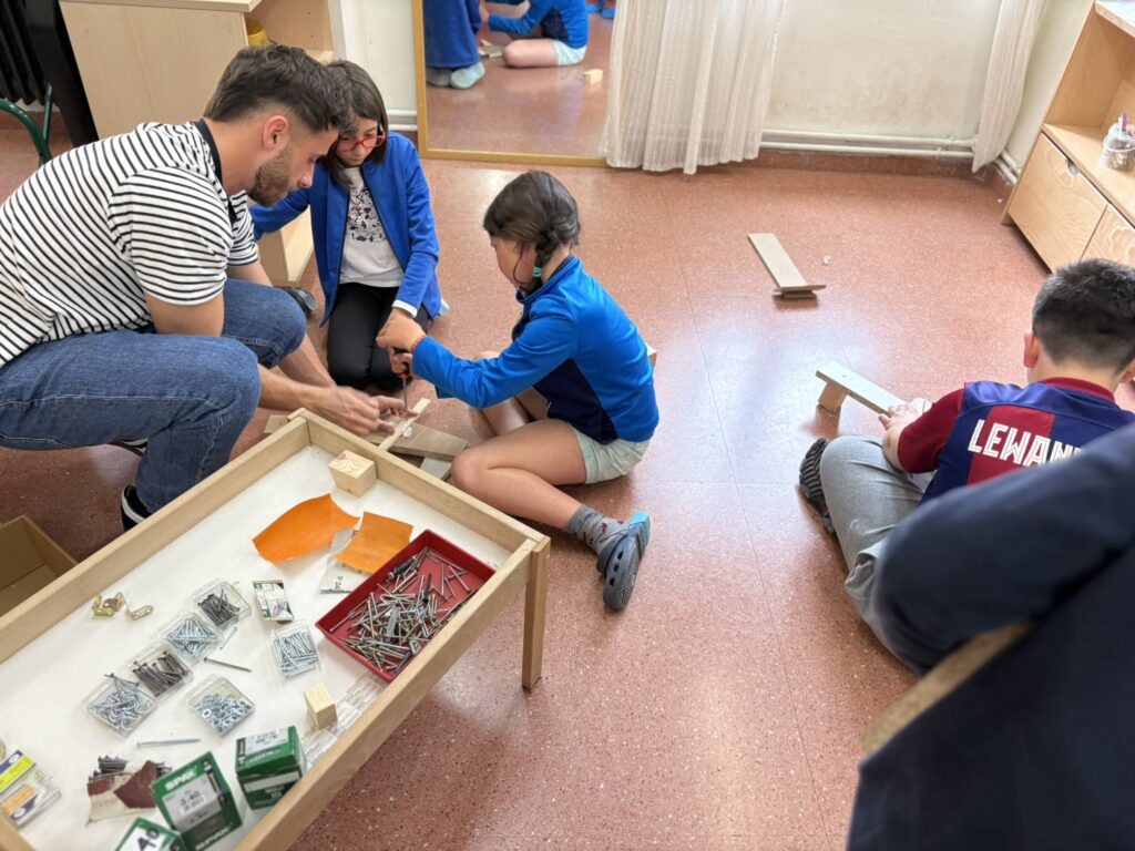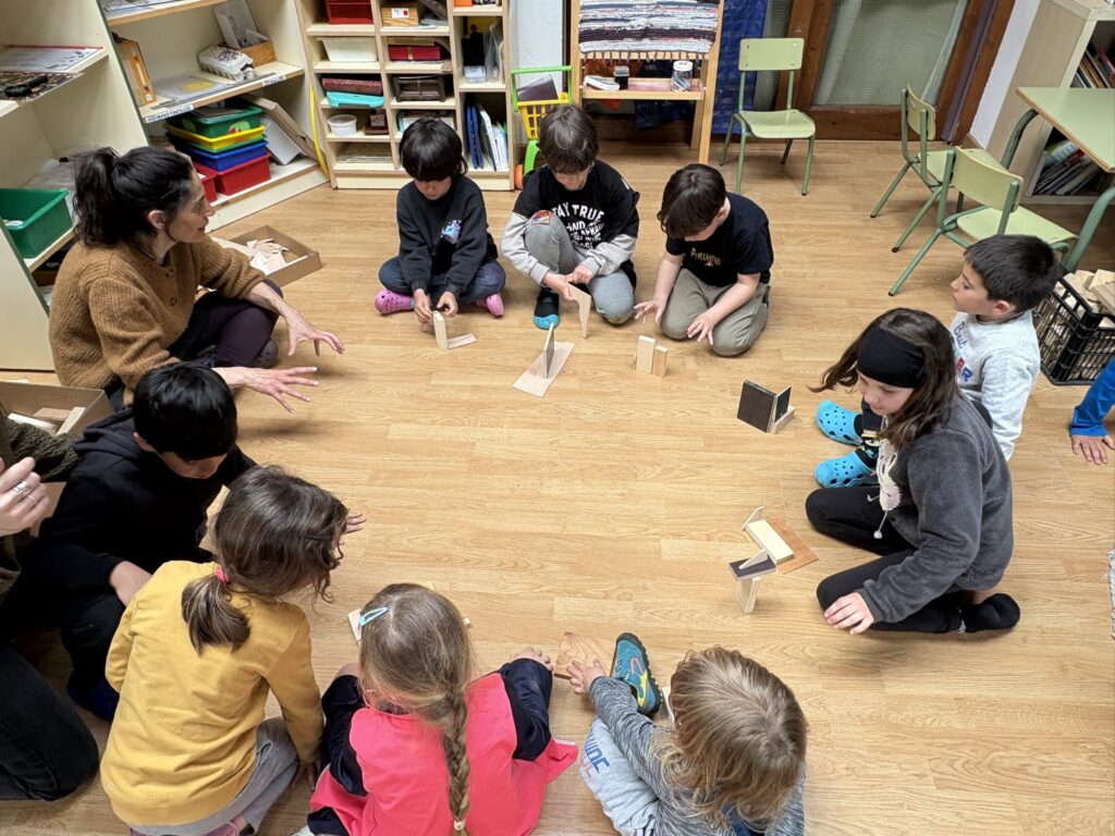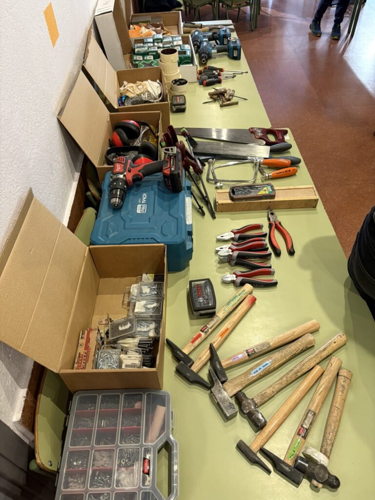 Seguim treballant l’art amb les companyes de la Rural Utòpica. La Vanessa, la Marta i la Vio ens porten materials molt interessants. A la primera sessió, en assemblea, els infants de l’escola van exposar que els hi agradaria treballar la fusta i…desig concedit! Ens porten fustes de diferents tipus i mides i materials i accessoris per treballar-la.