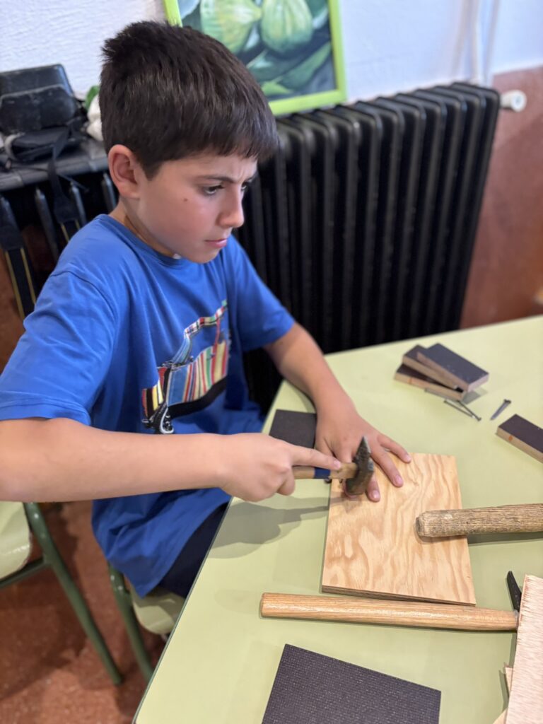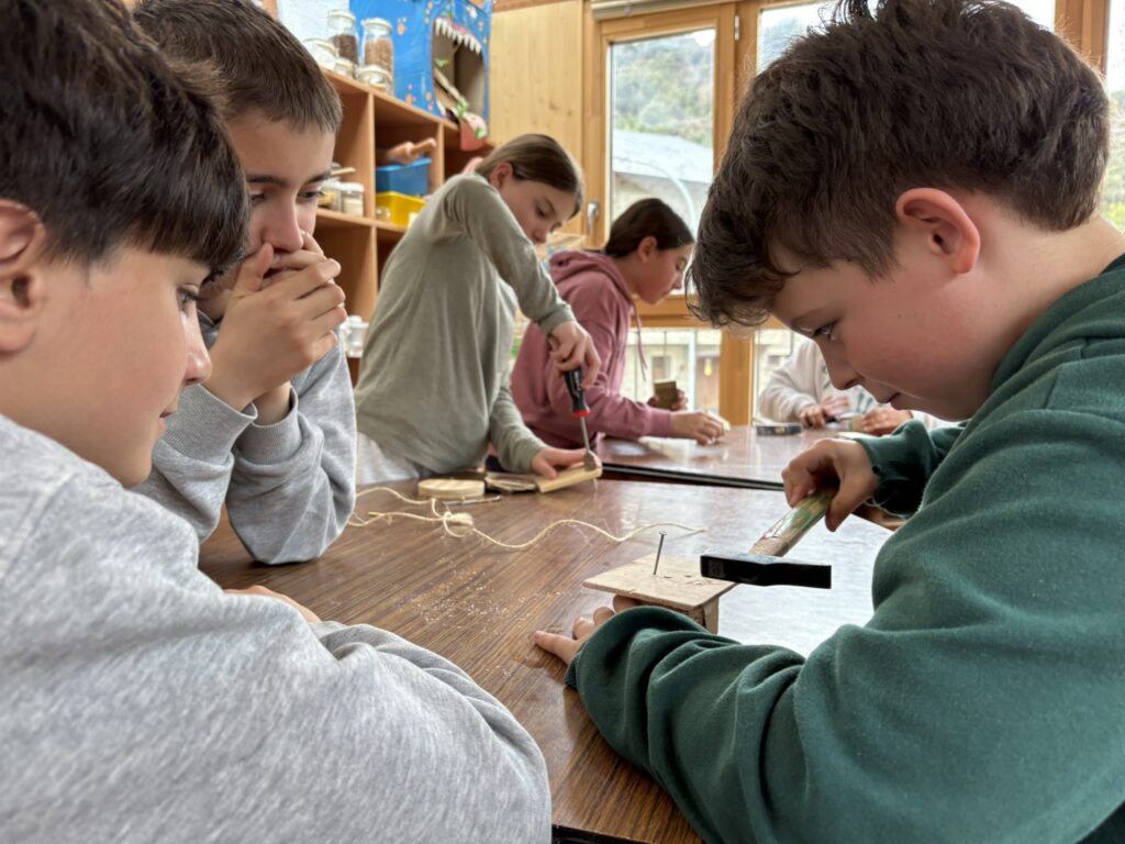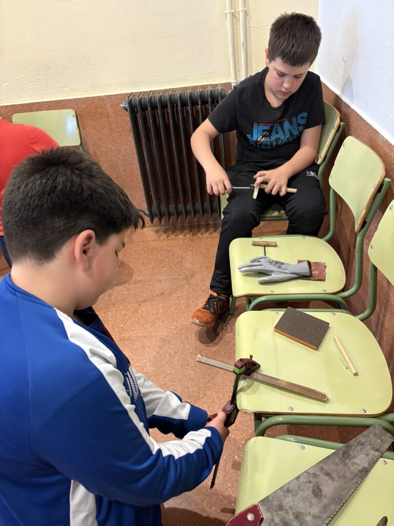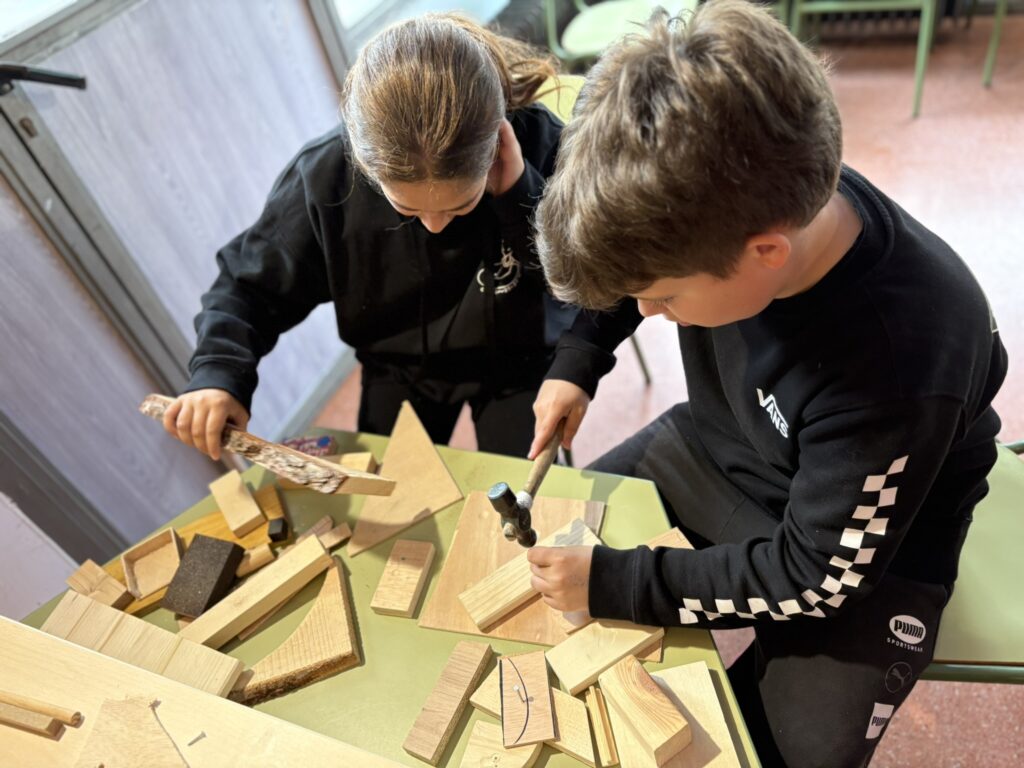 A la primera sessió, coneixem les peculiaritats dels materials i la fusta i aprenem  com treballar-la. Fent servir la imaginació, esforç i creativitat, surten resultats com aquests!