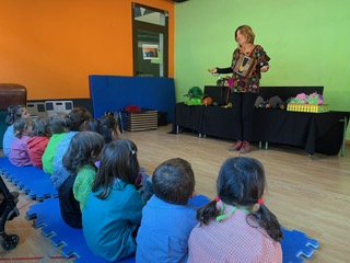 Ha estat una gran estona on hem après moltes coses i ens ho hem passat molt bé cantant, ballant i ajudant a l’Anna a explicar els contes sempre acompanyada del seu acordió.