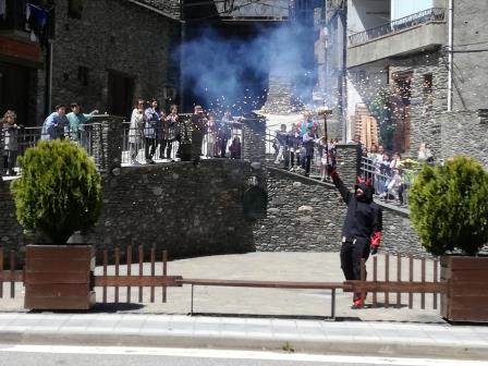 Aprofitant que els nens i nenes de 1r i 2n són els diables Banyatortes de la nostra escola, van convidar als diables de les Valls d’Àneu perquè ens fessin una petita demostració de les activitats que duen a terme dins els correfocs de les Festes Majors. Entre espurnes, foc i fum vam gaudir de l’espectacle
