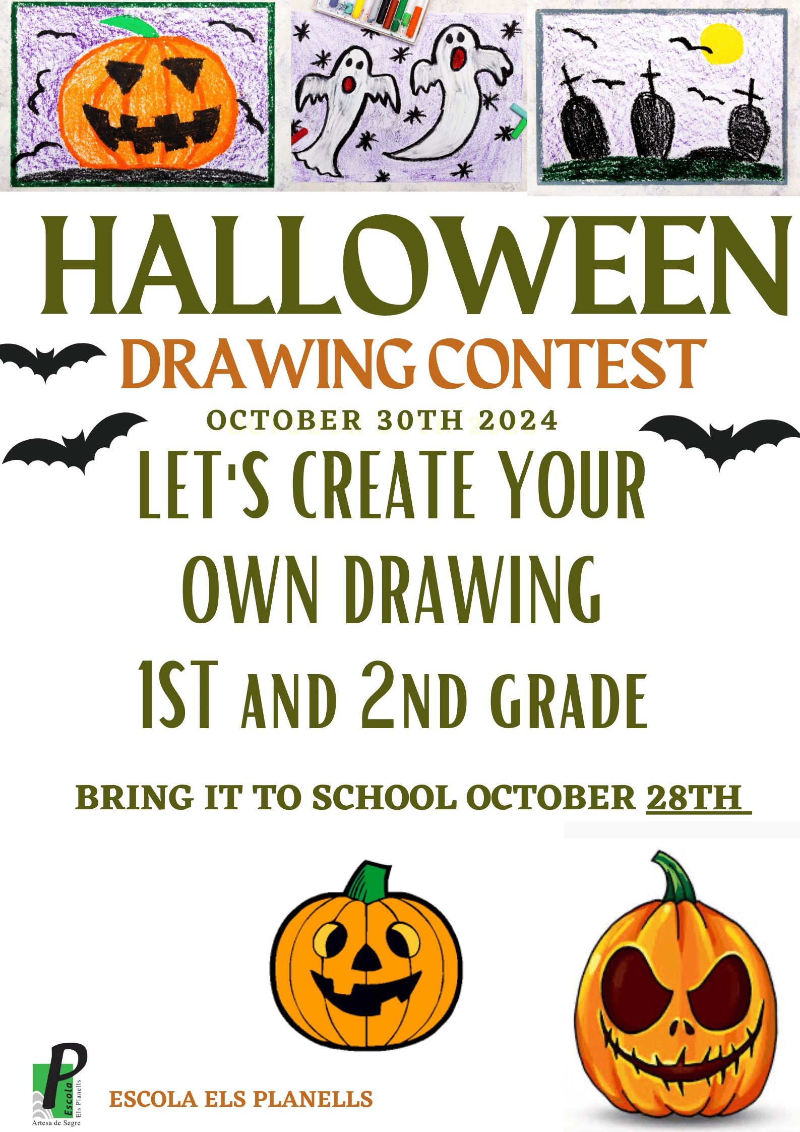 A Cicle Inicial, proposem a tot l’alumnat que participi en el concurs de dibuixos de Halloween. Tots els infants que vulguin participar hauran de presentar un dibuix de Halloween, ben original i terrorífic!