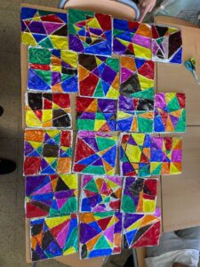 La classe del PALAU DE LA MÚSICA hem fet una sessió de plàstica on hem creat uns vitralls perquè estem