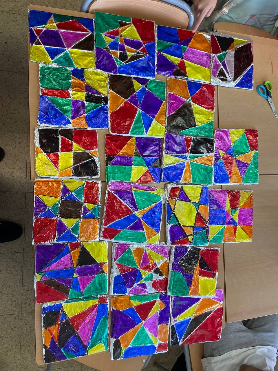 La classe del PALAU DE LA MÚSICA hem fet una sessió de plàstica on hem creat uns vitralls perquè estem treballant el modernisme durant el projecte del nom de la classe. Han quedat al·lucinants!