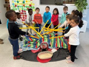 A les nenes i els nens de P3, les Balenes i les Estrelles, ens ha cagat encaixos, contes i targetes d’animals per llegir i tocar.