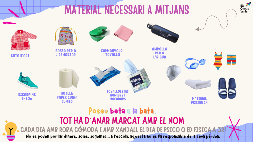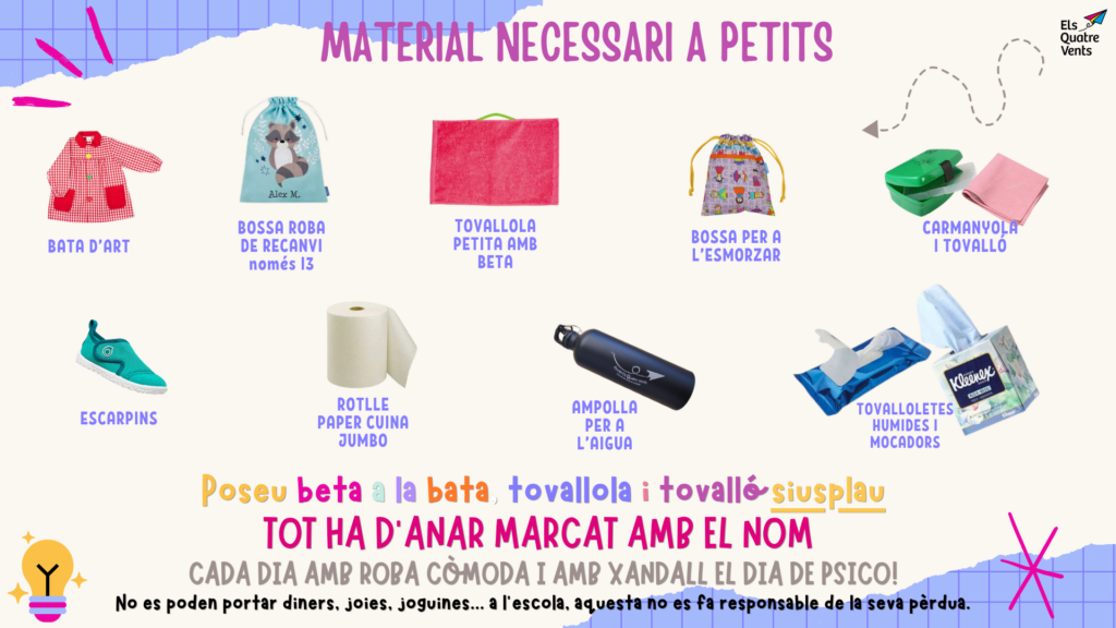 MATERIAL NECESSARI DE LES DIFERENTS COMUNITATS
