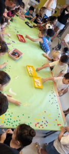 Avui hem rebut una visita molt especial a l’escola, els futurs infants que l’any vinent començaran I3. Han vingut acompanyats de familiars i els nens i nenes de la classe de les vaques i els gats i gates els hi han ensenyat tant les aules com els diferents espais de joc que hem preparat per a l’ocasió. Tot això s’ha amenitzat amb un pica-pica que hem fet al pati per omplir la panxa després de tant joc.
