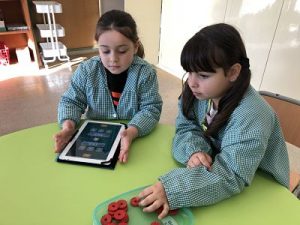Hem anat a l’aula de matemàtiques amb mig grup,mentre els altres companys estaven fent anglès.Hem pogut gaudir de les tauletes digitals i tot jugant hem après a contar,”sumar”,afegir i treure…ajudant-nos amb material.