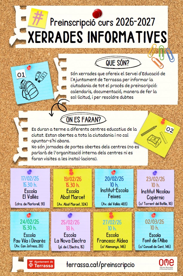 En aquest espai anireu trobant informació sobre el procés de preinscripció pel curs 2025-2026, aquest tindrà lloc del 12 al 26 de març (ambdós inclosos). Clicant el següent ENLLAÇ tindreu accés a tota la informació (calendari, orientacions, presentació de sol·licitud, etc.) BAREM PROVISIONAL OFERTA INICIAL