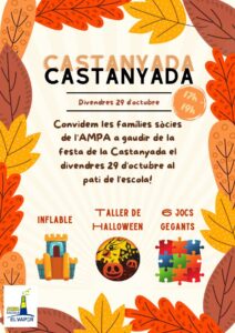 CELEBRA LA CASTANYADA AMB L’AFA! Feu un comentari / Per admin / 26 d'octubre de 2021 / AFA Escola El Vapor General Infantil Portada Primària Animeu-vos a participar, us ho passareu de por!