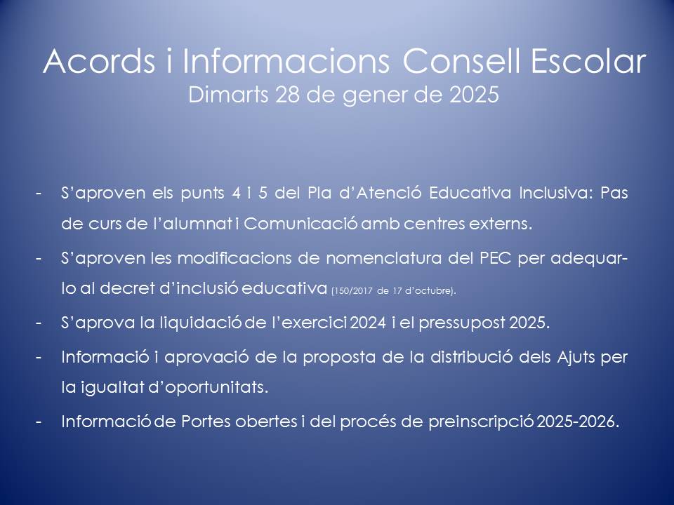 MEMBRES DEL CONSELL ESCOLAR: