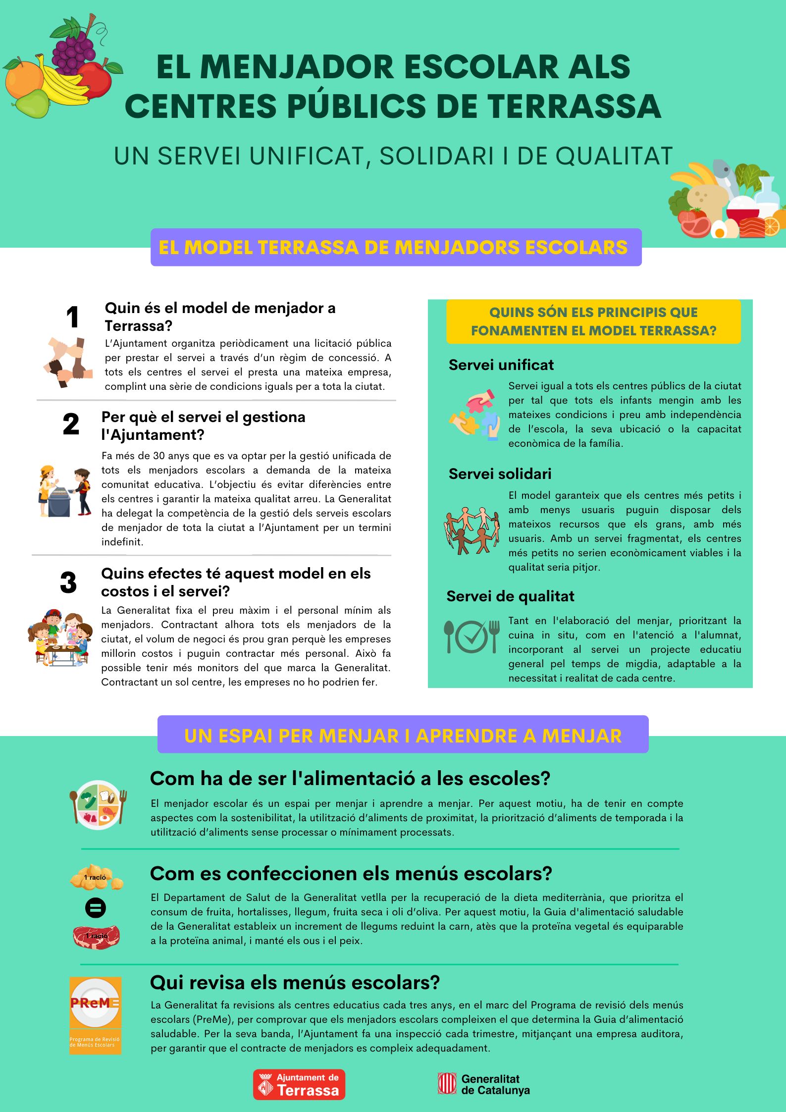 L’empresa Mediterránea de catering, és l’encarregada de gestionar el servei de menjador de totes les escoles públiques de la localitat.