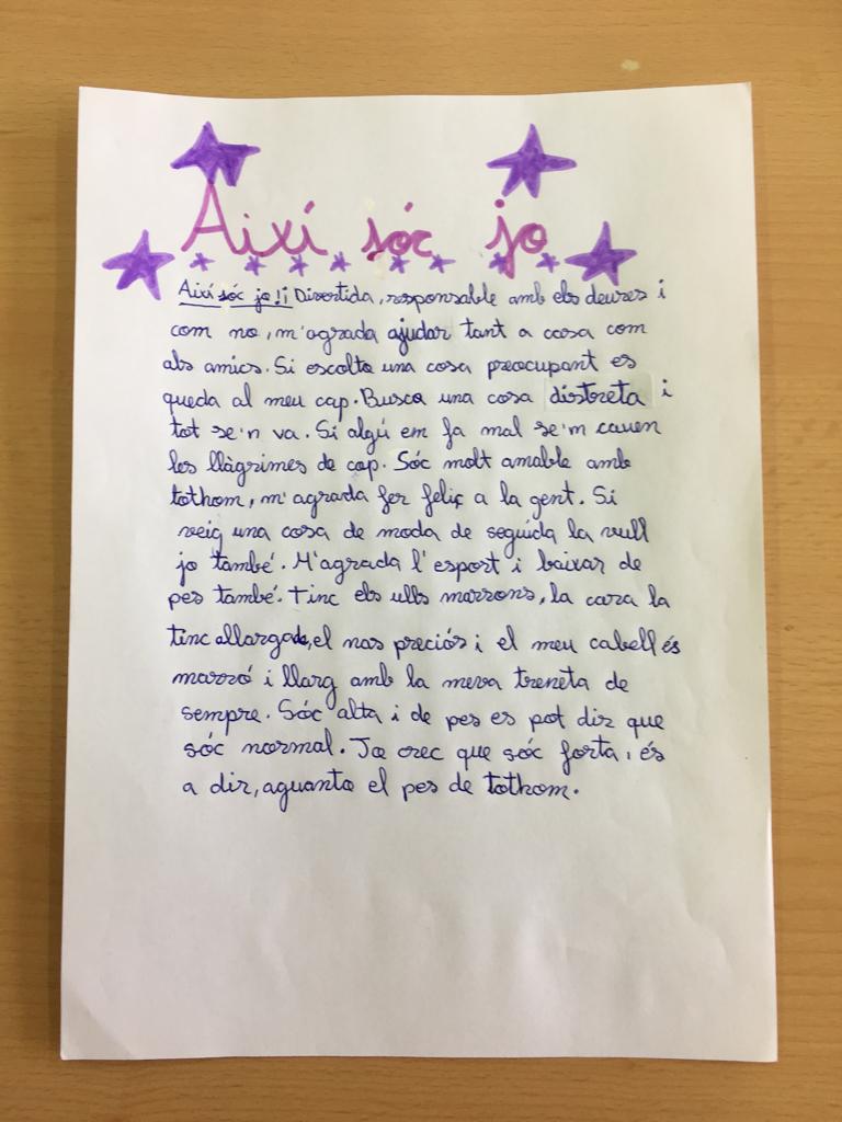Al llarg d’aquestes setmanes els alumnes de 6è s’estan preparant per fer front a les proves de competències bàsiques. En aquestes dues imatges es poden veure dos escrits fets per alumnes de la classe de 6è B sobre cóm es veuen ells/es reflectits.