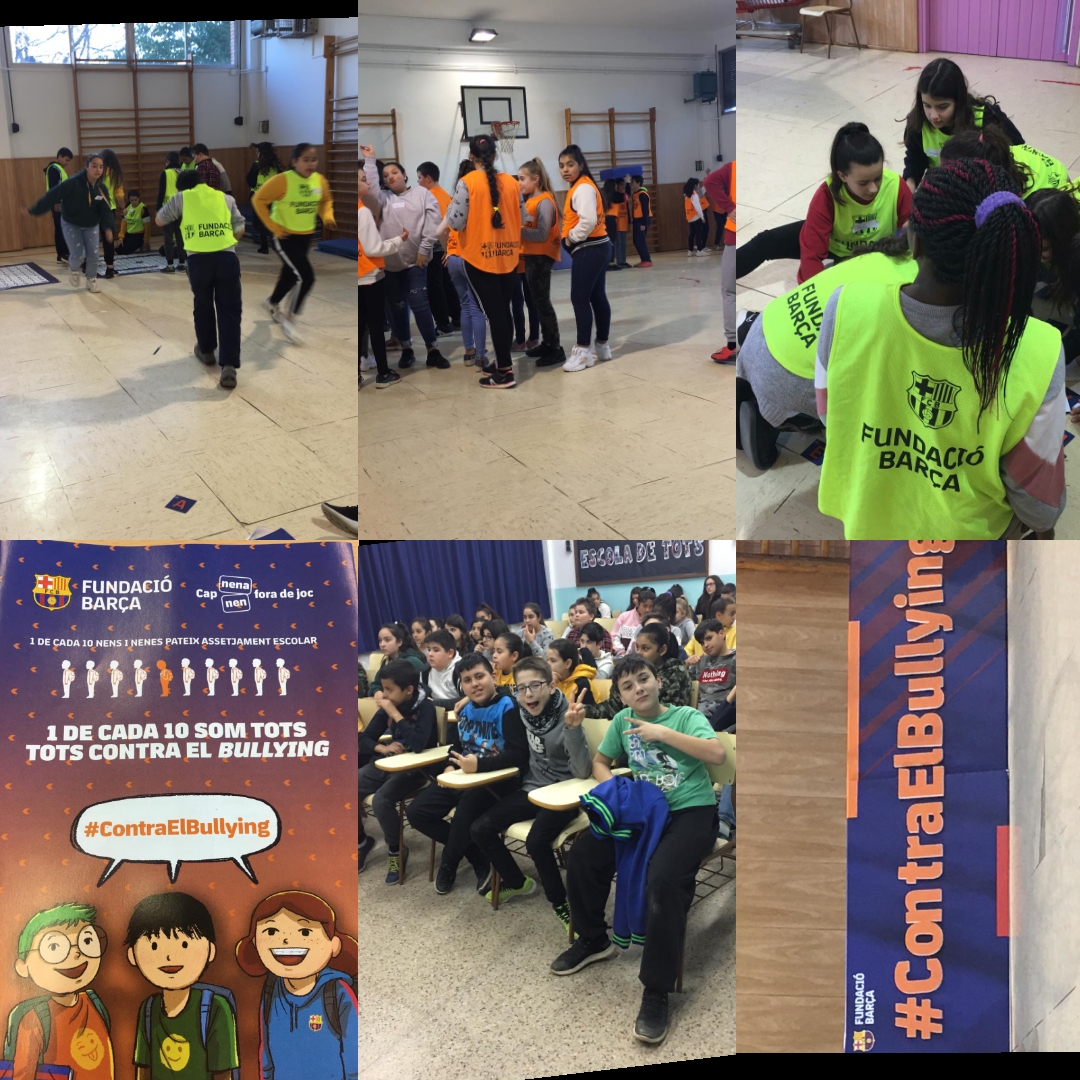 Per part de la Fundació Barça van venir dues professionals per dinamitzar dues activitats. La primera part es va desenvolupar a l’aula i va constar d’unes diapositives amb diferentes exemples on es veia algun tipus d’assetjament escolar, i es va generar un debat entre els infants.
