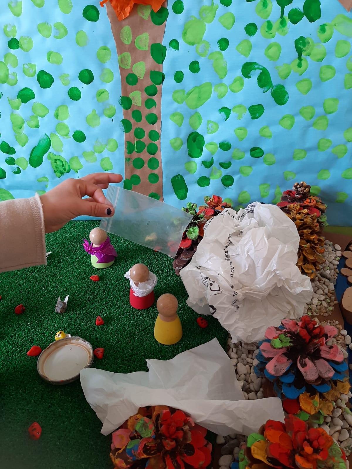 Com a activitat principal vam crear un minimón. A I3 es va ambientar amb la granja, i les classes de I4 i I5 van aprofitar l’inici de la primavera per crear-lo al voltant d’aquest tema. Primer vam pensar entre tots i totes com el podríem fer i què hi podríem posar. Vam fer una llista dels elements escollits i ens vam posar a crear-lo amb els diferents materials. Un cop fet el minimón hi vam posar plàstics i altres elements que simbolitzaven l’impacte al medi ambient de les actituds poc responsables amb el medi ambient. A partir d’aquí, vam valorar la importància que té cuidar el nostre planeta i com ho podem fer.