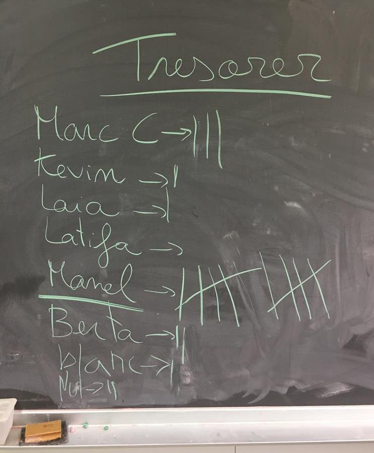 El dia 18 de novembre vam votar l’equip directiu. Vam decidir qui seria: el tresorer/a, el president/a, el sots-president/a, el secratari/a i el sots-secratari/a. Cada candidat va presentar el seu discurs per intentar convèncer la resta de socis. Al final d’estar votant durant una estona ens vam decidir i el càrrecs són els següents: