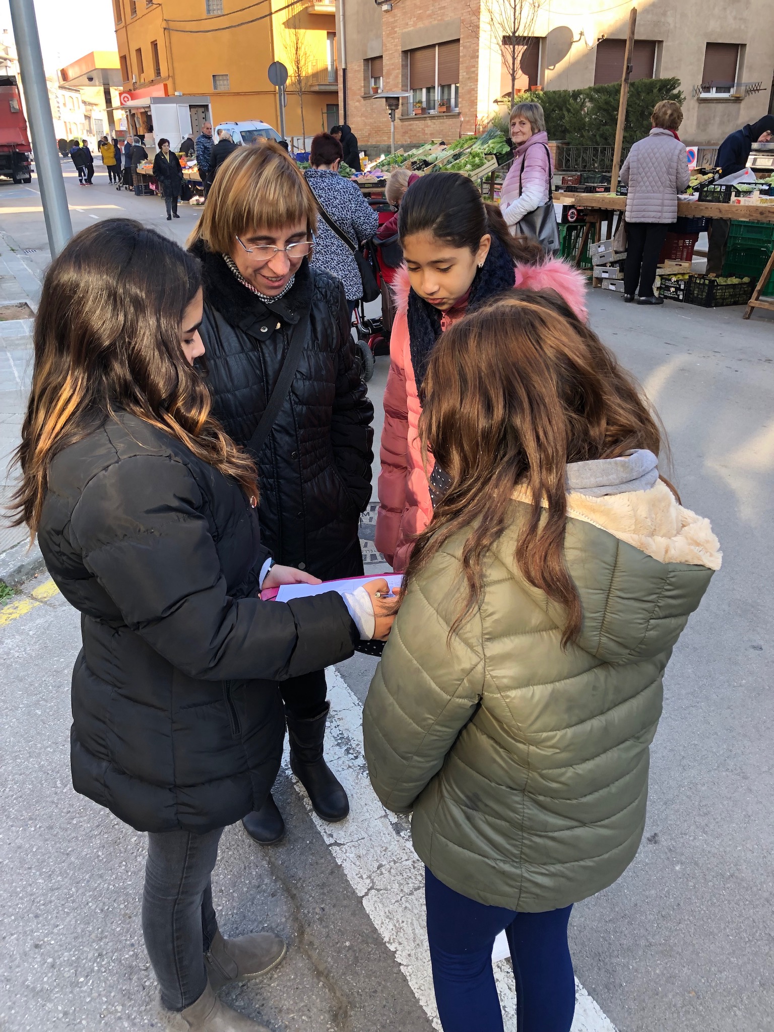Durant dos dijous, tan “28 passes cap al futur” com “Els catacracks olímpics” hem anat al mercat setmanal del poble per realitzar un estudi de mercat. Allà hem demanat a la gent què opinava sobre els productes que volem fabricar, quin preu n’estaria disposat a pagar i propostes de millores. Ara, amb tota aquesta informació, ja ens podem posar a produir!
