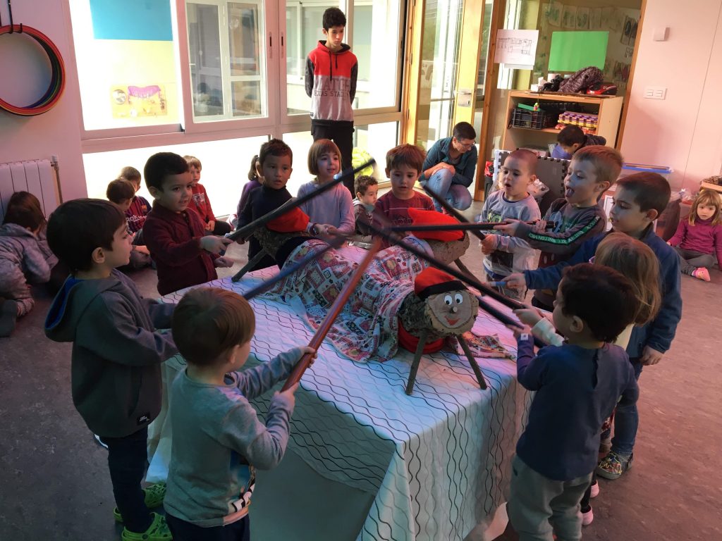 Avui els nens i nenes de P3, P4 i P5 hem cagat tots junts el tió! Ens ha cagat moltes coses per l’escola i ens ha portat coca per esmorzar, estava molt bona!