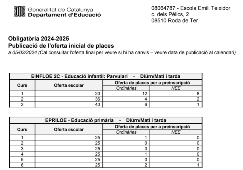 Aquí trobareu: Alumnat assignat al centre en primera petició Alumnat preinscrit Llista d’espera