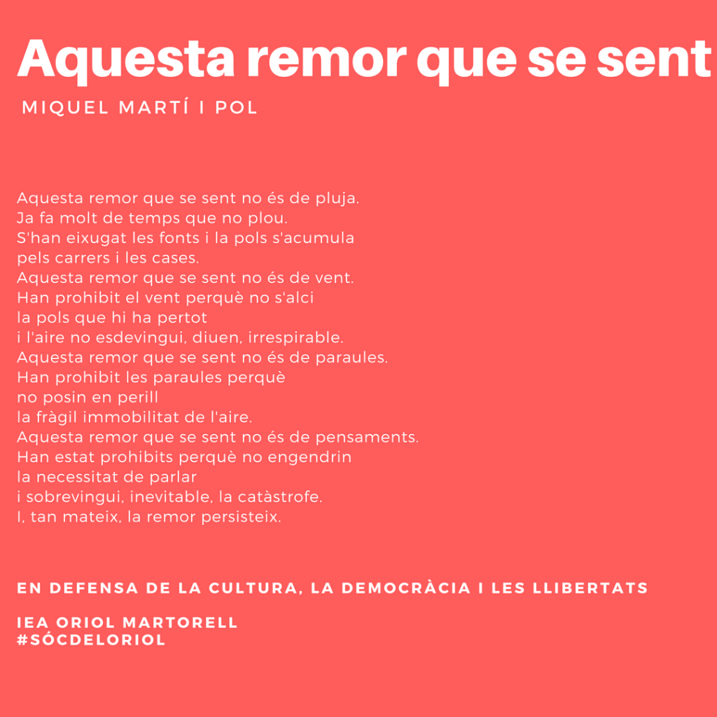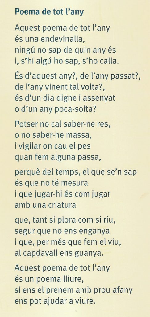 Miquel Martí i Pol Feu un comentari / Per Web / 21 de novembre de 2021 / 5è 6è Els Grans General Promoció 2010 Promoció 2011 / 5è, 6è, Biblioteca, Grup dels grans, Miquel Martí i Pol Les nenes i els nens de 5è i 6è aquest any tampoc no hem pogut anar al teatre Eliseu a llegir poemes de Miquel Martí i Pol com fèiem cada any per les Jornades. Per tant hem decidit gravar-los… Aquí els teniu per si els voleu escoltar!!! 5è 6è A 6è B