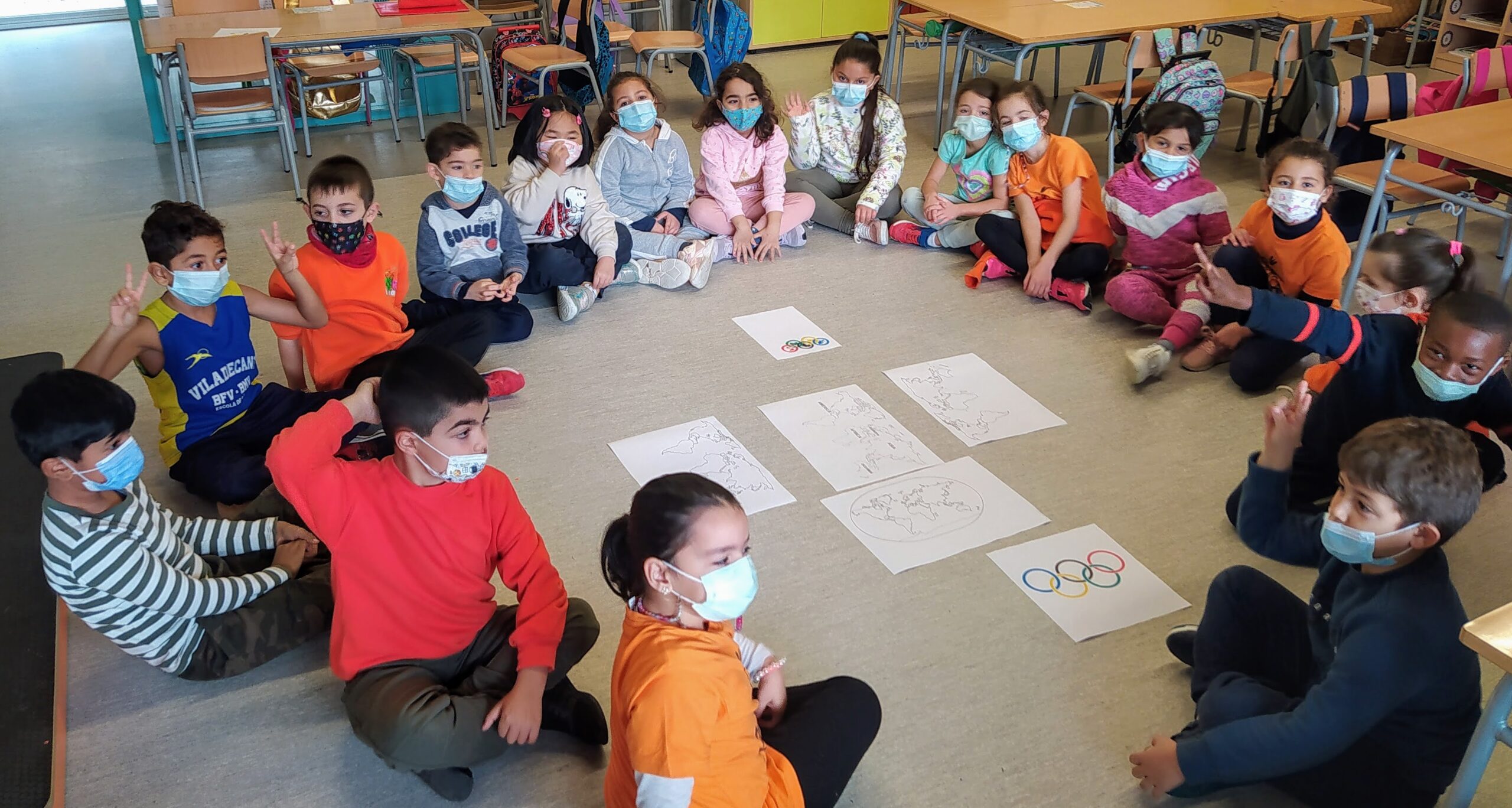 A més, hem relacionat el continent amb el color de l’anella olímpica, ja que aquest curs a l’Enxaneta l’eix transversal són ELS JOCS OLÍMPICS.