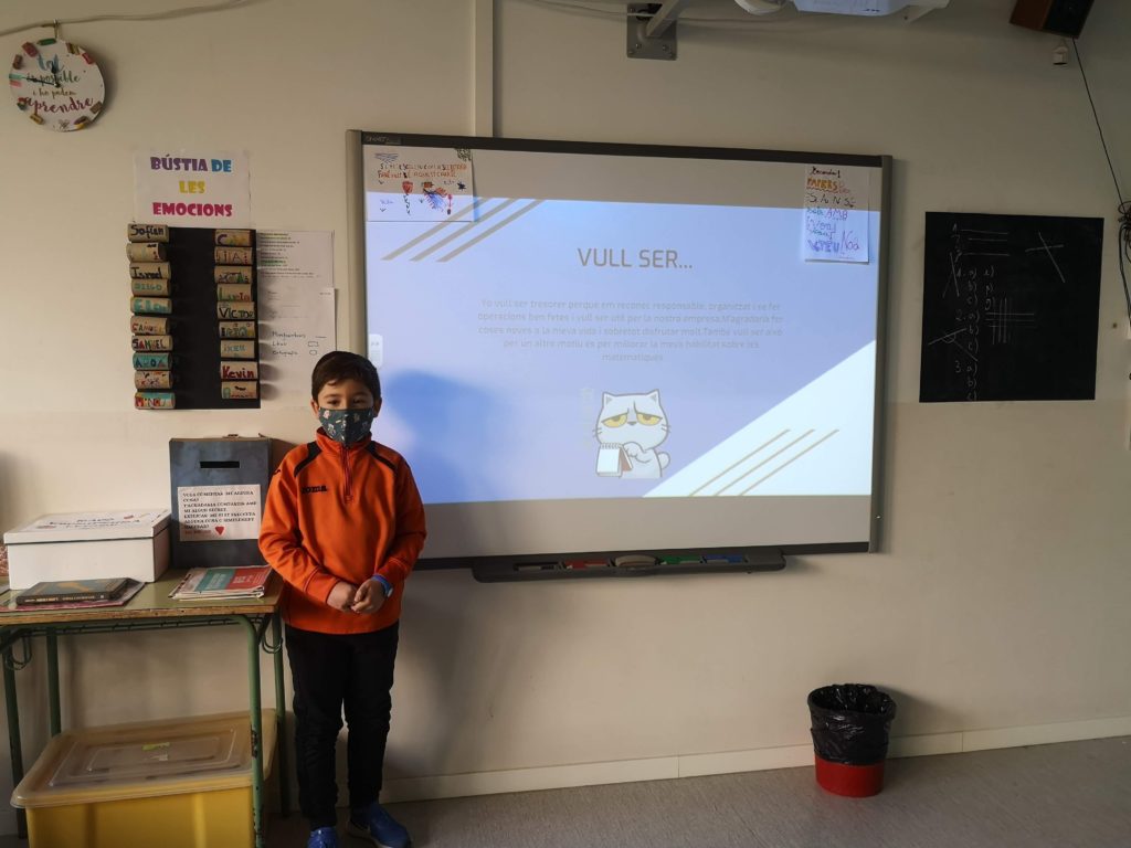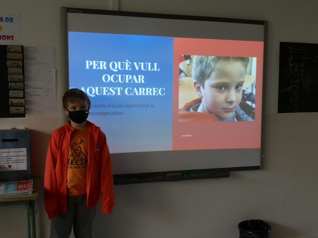 Els nens i nenes de 5èB de l’escola Enxaneta vam fer una presentació per escollir quins nens o nenes podien formar part de l’equip directiu de la cooperativa.
