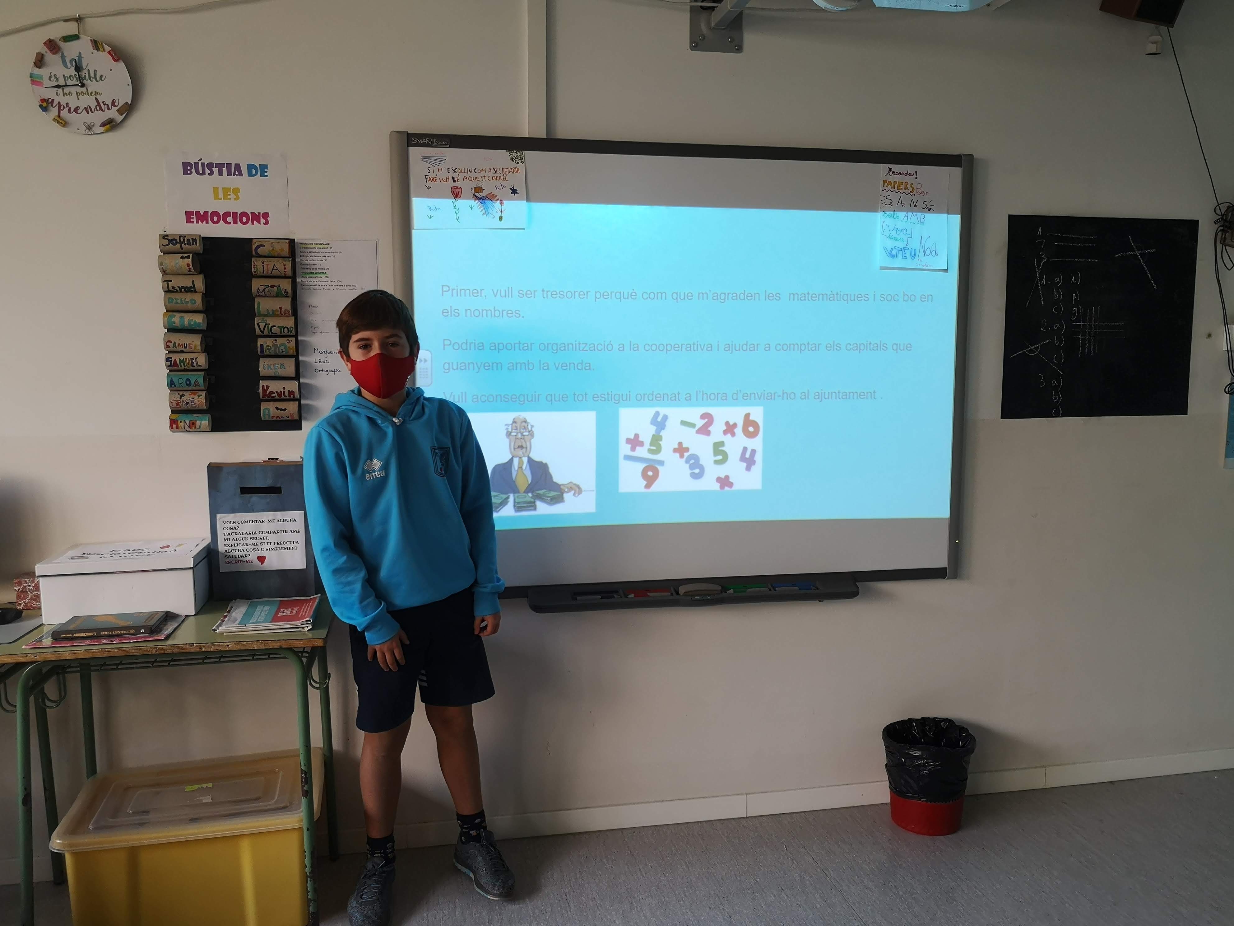 Els nens i nenes de 5èB de l’escola Enxaneta vam fer una presentació per escollir quins nens o nenes podien formar part de l’equip directiu de la cooperativa.