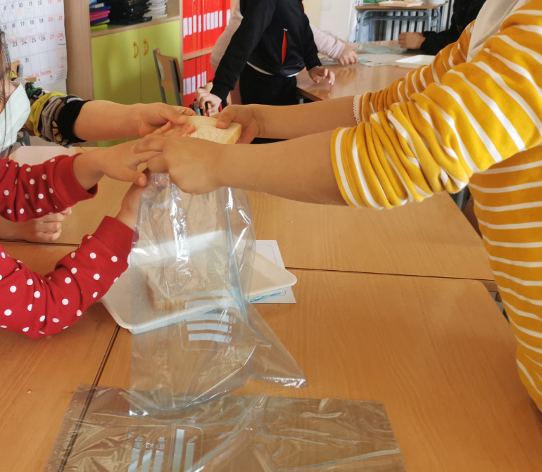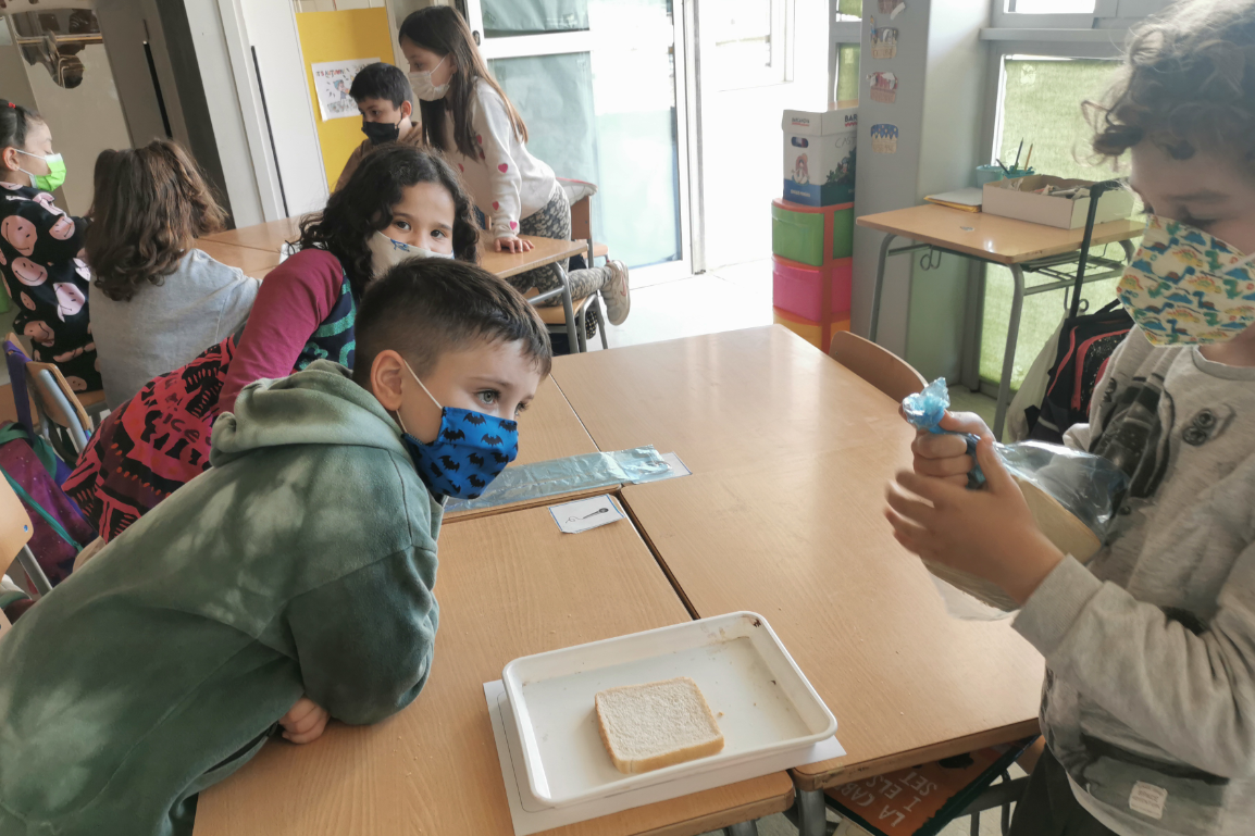 - EXPERIMENT DEL PA: Què passa si agafem el menjar sense rentar-nos les mans? Com es queda el pa?