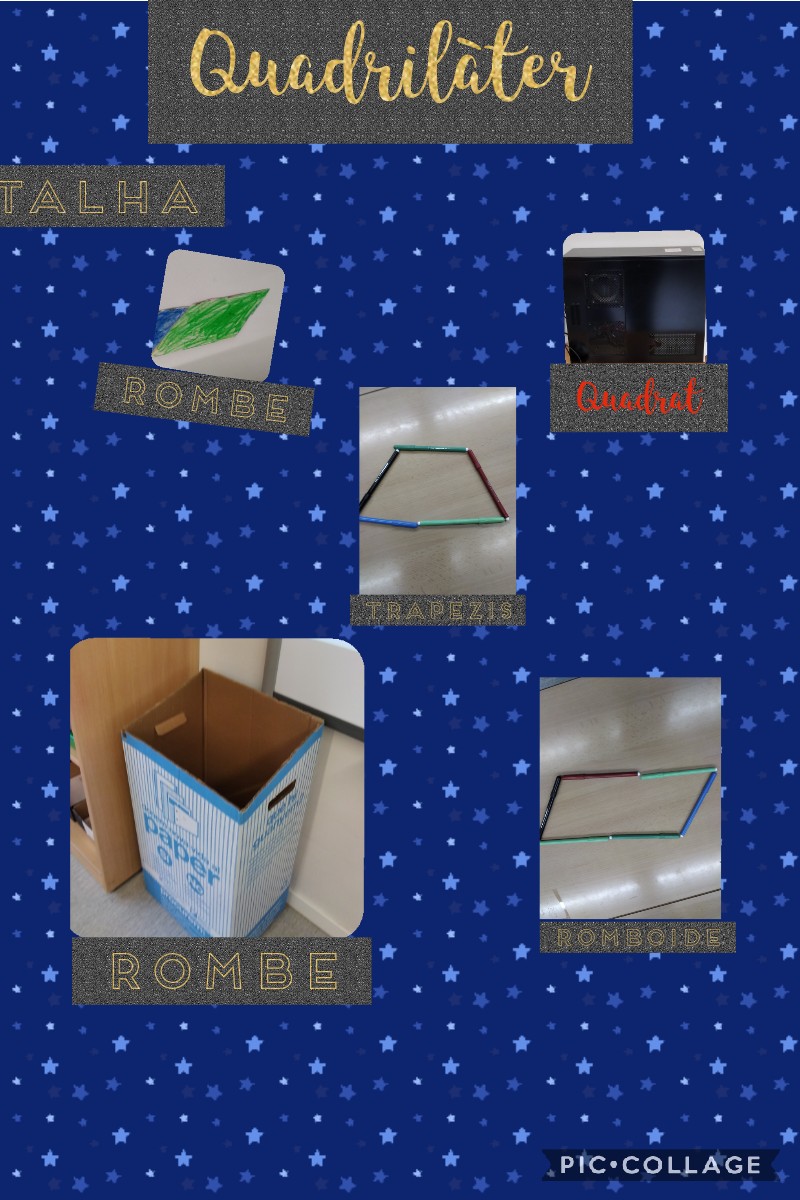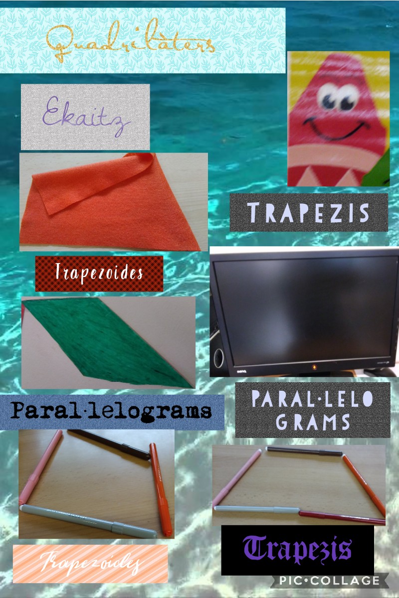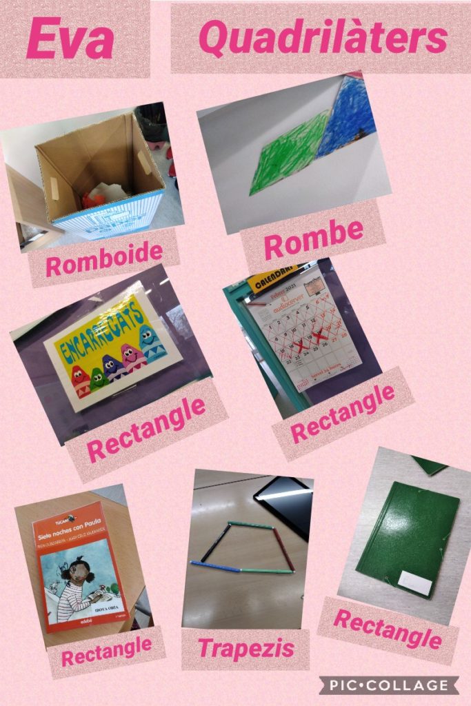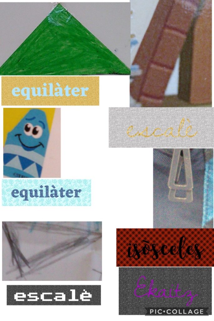Hem reconegut figures planes del nostre entorn, a l’aula. Les que hem treballat han estat els triangles i la seva classificació segons els seus costats i els quadrilàters.