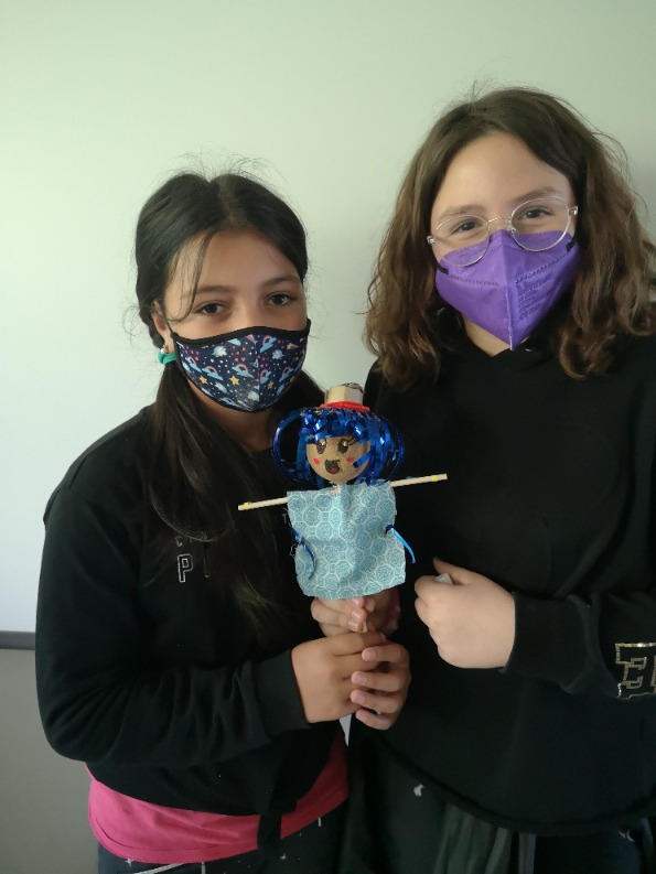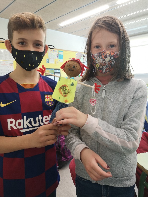 De seguida ens vam engrescar en ajudar els nostres companys/es i la Mireia ens va deixar la tarda per elaborar molinets i espantaocells. Ens vam organitzar de la següent manera: dues taules vam fer molinets, amb ajuda de l’Anna, i les altres dues vam fer espantaocells, amb l’ajuda de la Mireia amb la pistola de silicona.