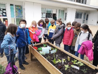 I avui, per a sorpresa nostra, han tornat a venir a la classe els nens i nenes de 2n a portar-nos un regal (un preciós dibuix del seu hort amb una nota) i a convidar-nos a anar a veure’l. Així que no ens ho hem pensat gaire i hem baixat a veure la meravella d’hort que han cultivat. Els hem felicitat quan han sortit de la classe perquè han fet una molt bona feina.