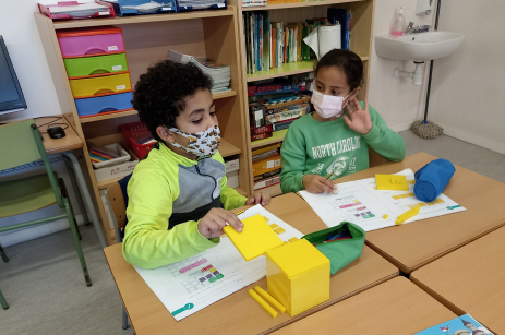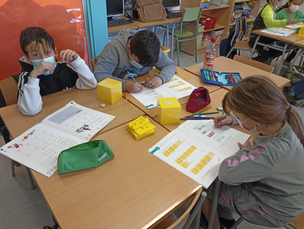 A través de Innovamat l’alumnat de 3r aprèn les matemàtiques de manera pràctica, vivencial i manipulativa. El material que ens aporta aquesta eina és un material que ajuda a crear diferents mecanismes de construcció del pensament, a través de la manipulació l’alumnat pot arribar a la solució de la manera més pràctica, construint un coneixement sòlid.