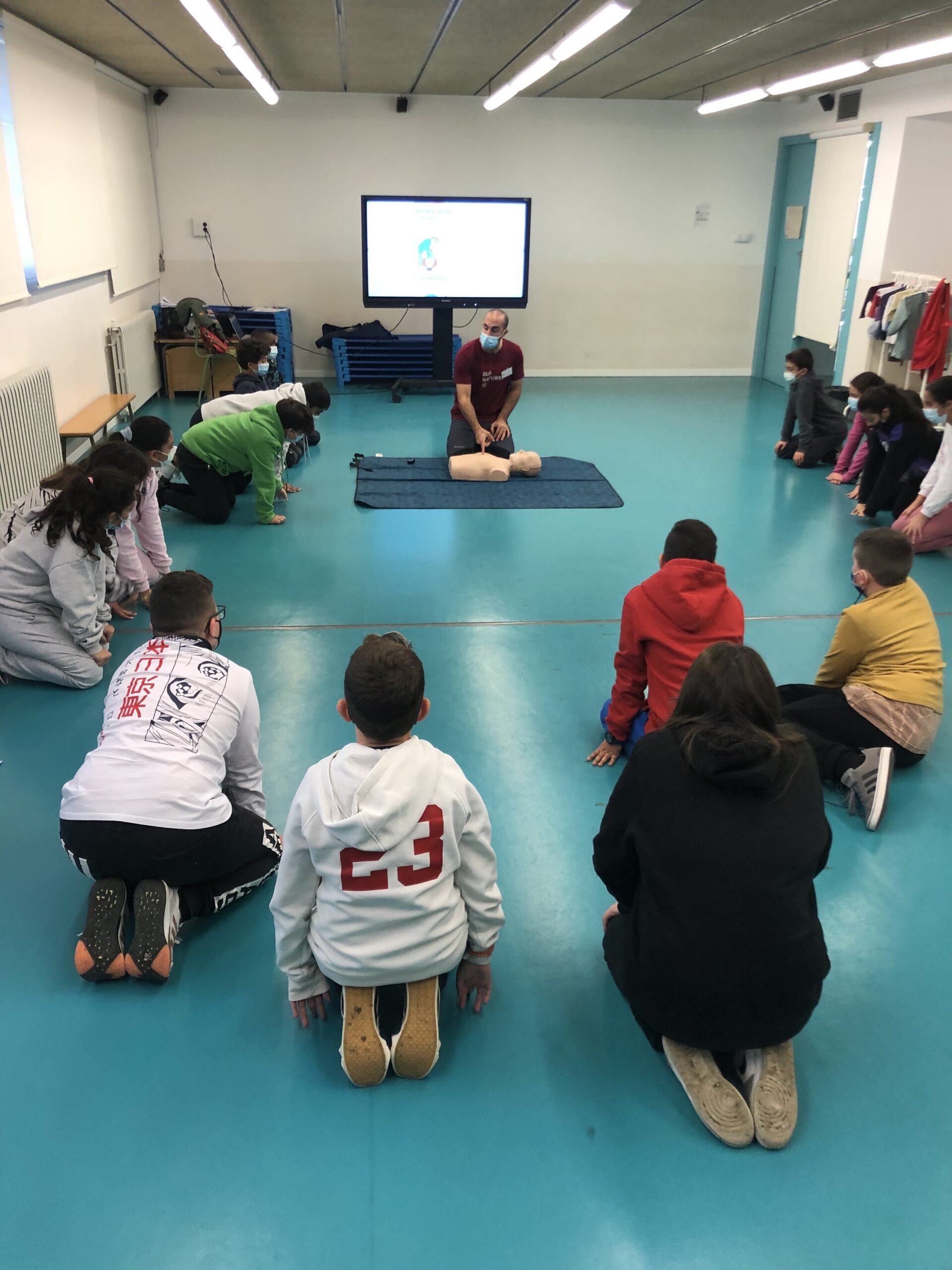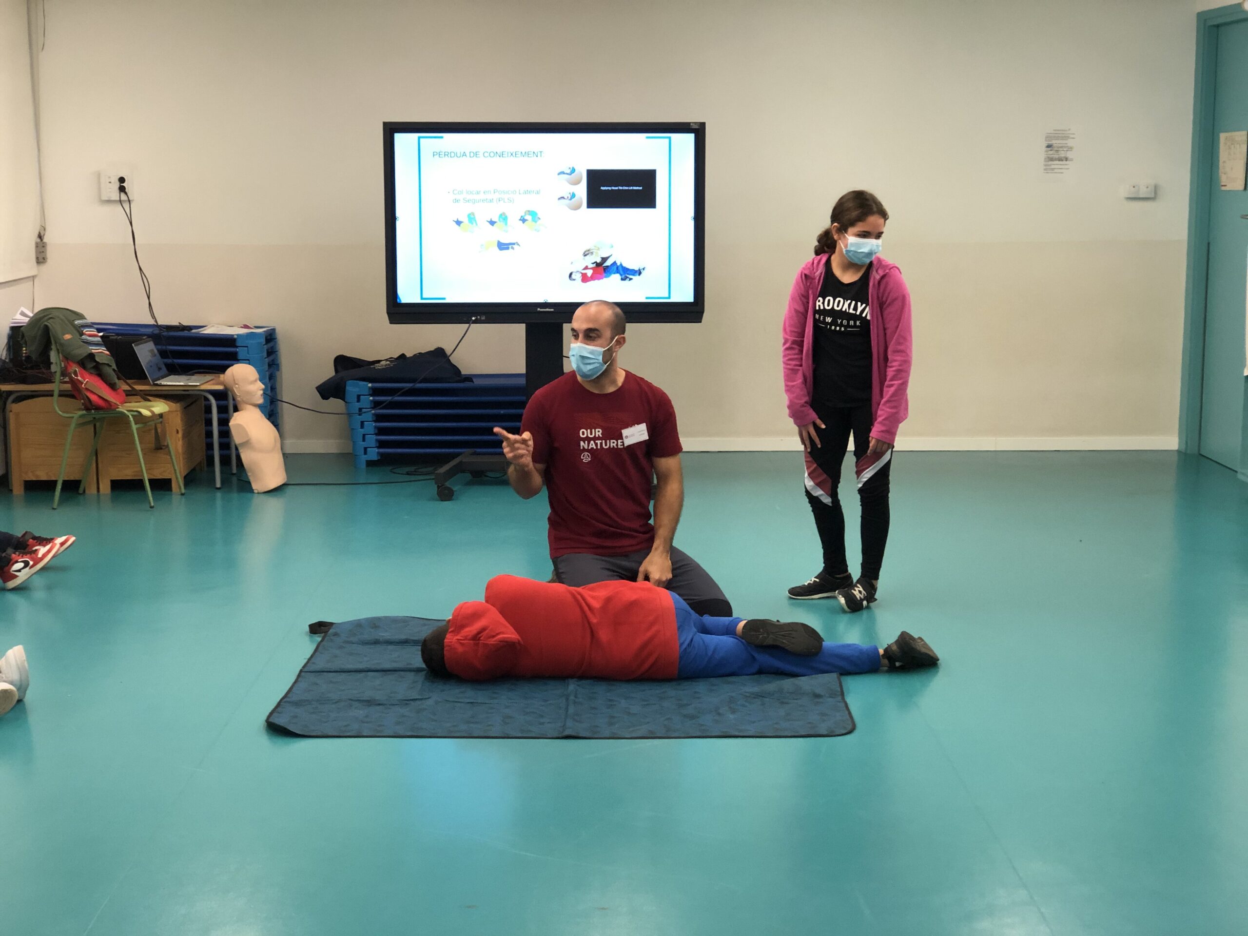 Ens va explicar què fer en cas de convulsions, sagnat nasal, ferides, hemorràgies, cremades i fractures. També ens va ensenyar els cicles de la RCP (reanimació cardiopulmonar) i ens va dir que s’havia de fer en cas d’aturada cardiorespiratòria.