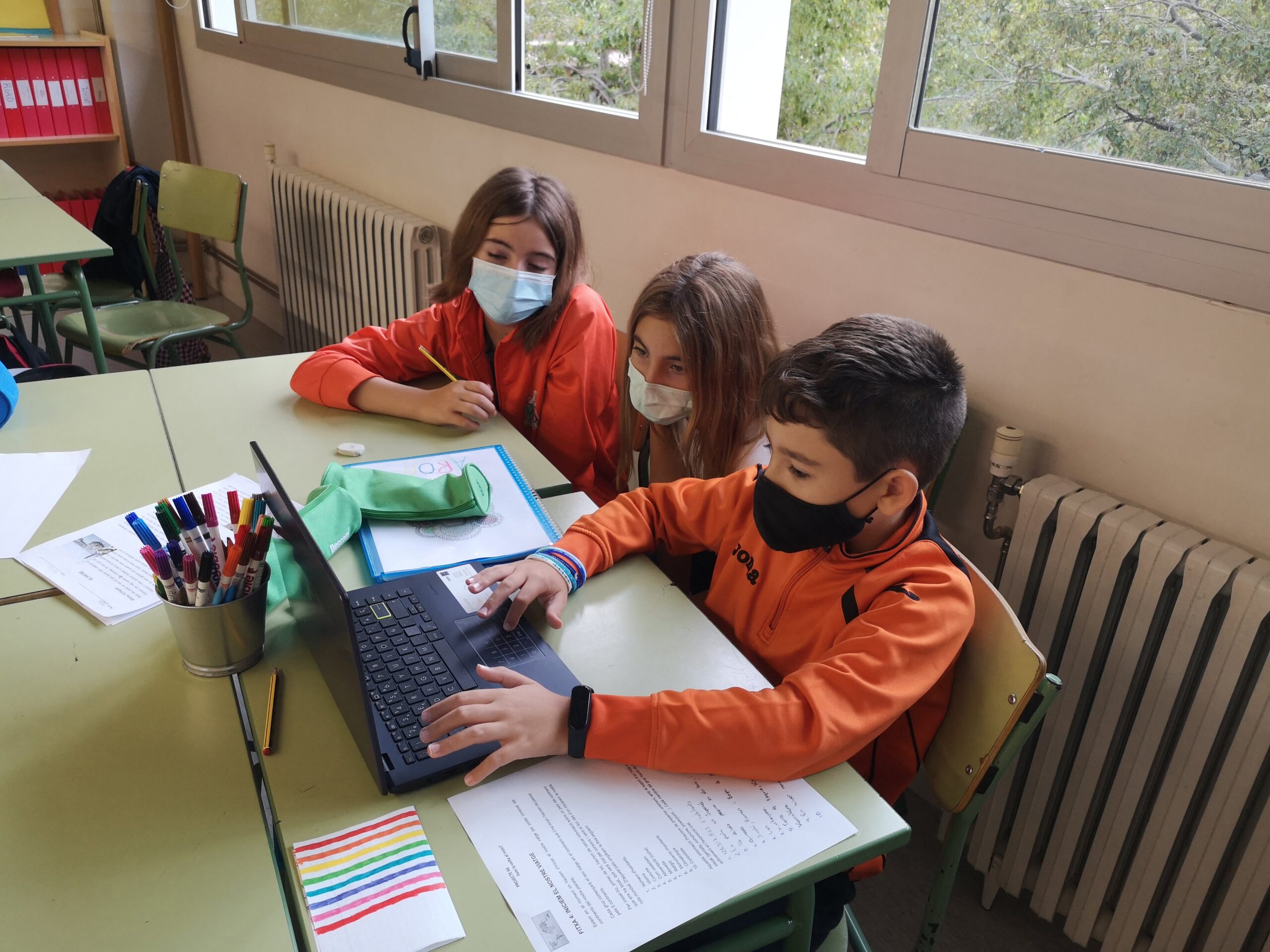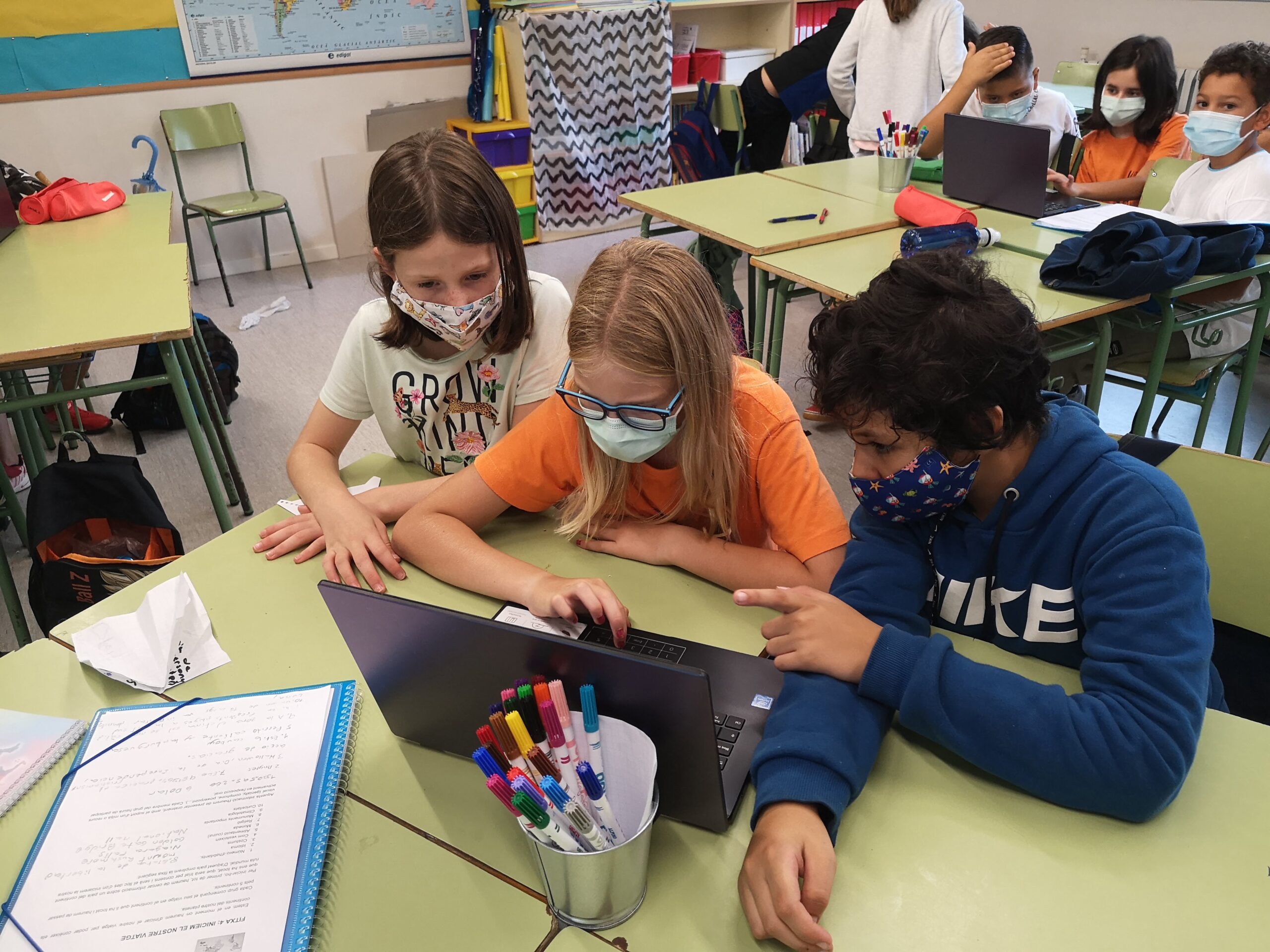 Les classes de 6è comencem l’escola fent un projecte de la volta el món en grups. Depèn de la taula on estiguis, surts d’un país diferent del món.
