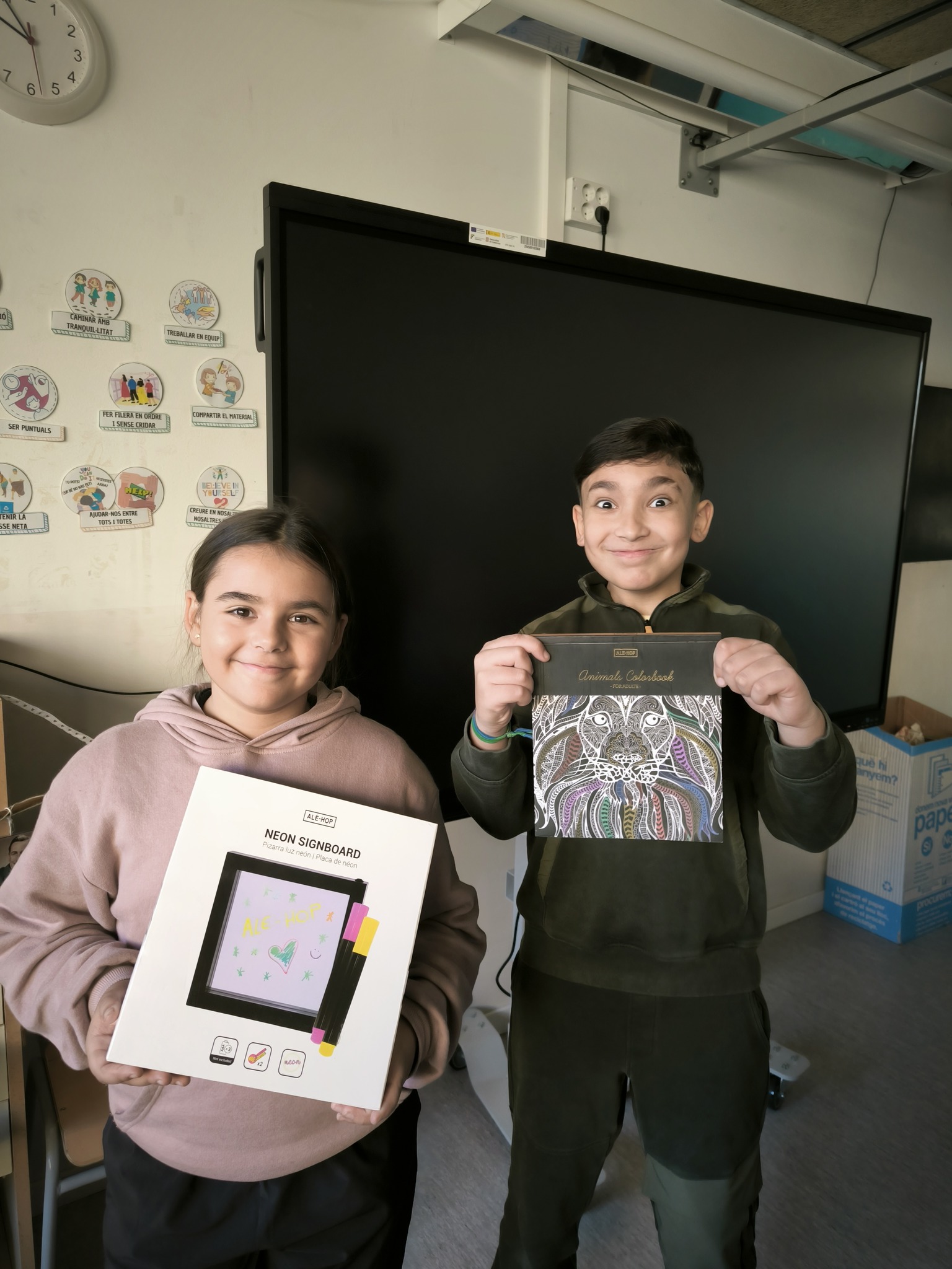 El 8 de gener vam trobar l’arbre de l’entrada de l’escola ple de regals. A nosaltres, els nens i les nenes de 5è, ens van portar una pissarra de neó i un llibre de mandales.