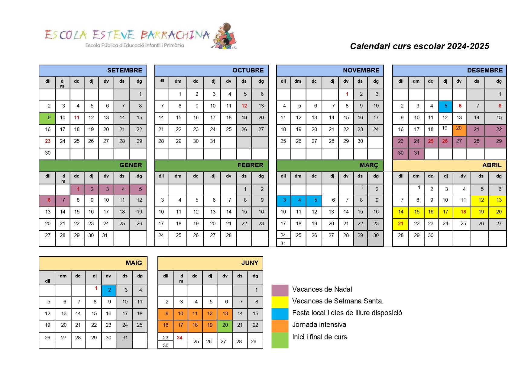 Descarrega calendari escolar