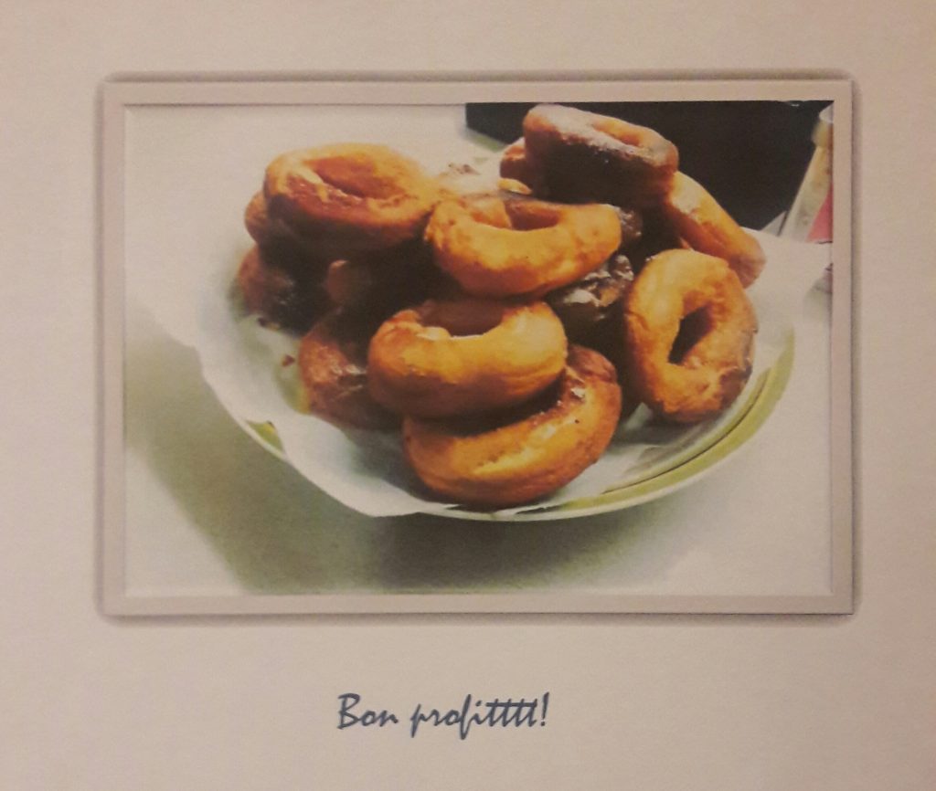 L’Arlette ens escriu i ens diu: Envio una recepta de rosquilles per setmana santa que he escrit a l’ordinador. He fet taules i colors i titols que ma agradat molt. Hi ha els ingrediens, els estris i els pasos que es fan. Tambe he posat una foto de com ens han quedat a nosaltres. Magrada
