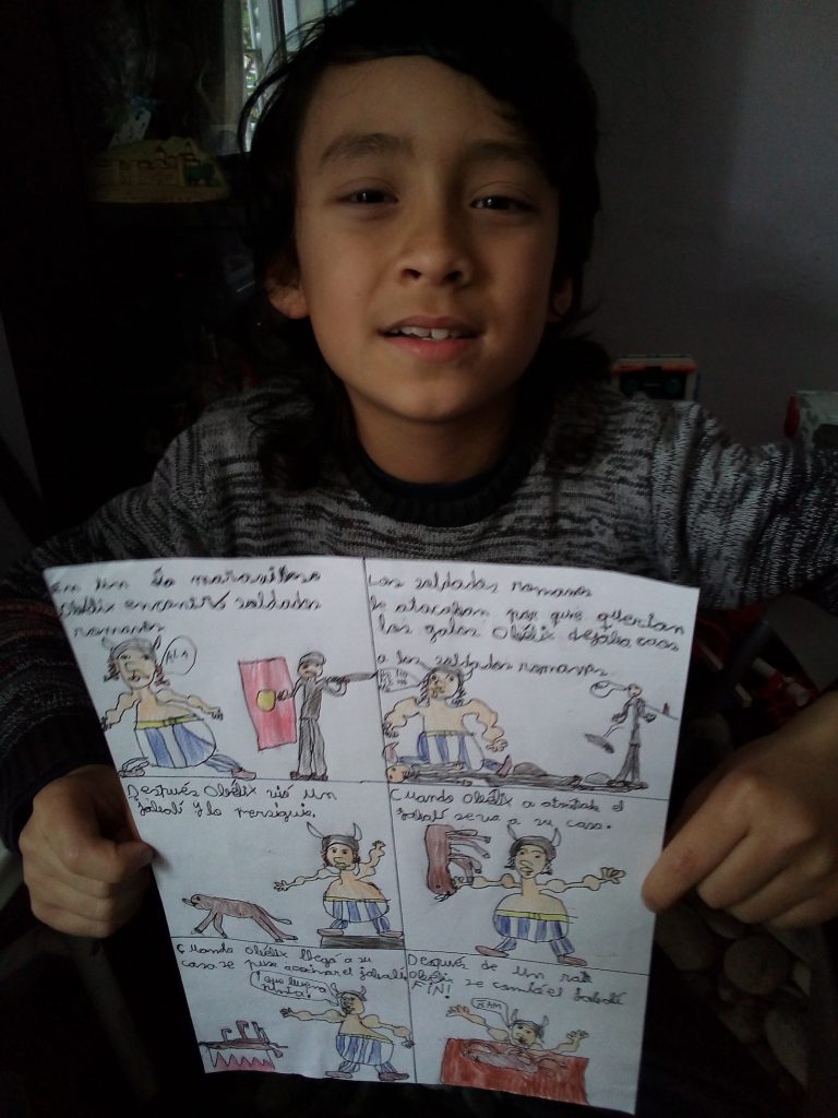 L’Oriol de 4tB vol compartir amb nosaltres un còmic fet per ell. Molt bona feina Oriol! L’Anna, la seva tutora, li diu que és un bon reconeixement al seu dibuixant, Albert Uderzo, que va morir el dia 24 de març. Era francés i va ser el creador, junt amb René Goscinny, de les aventures d’Astèrix i