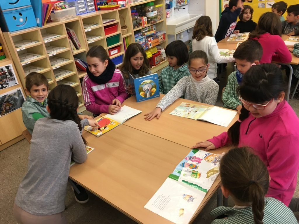 Els alumnes de 4t hem estat fent de padrins de lectura dels nens de P5. Un cop a la setmana hem anat a visitar-los per llegir-los uns contes que hem comentat amb cada fillol. FOTOS PADRINS