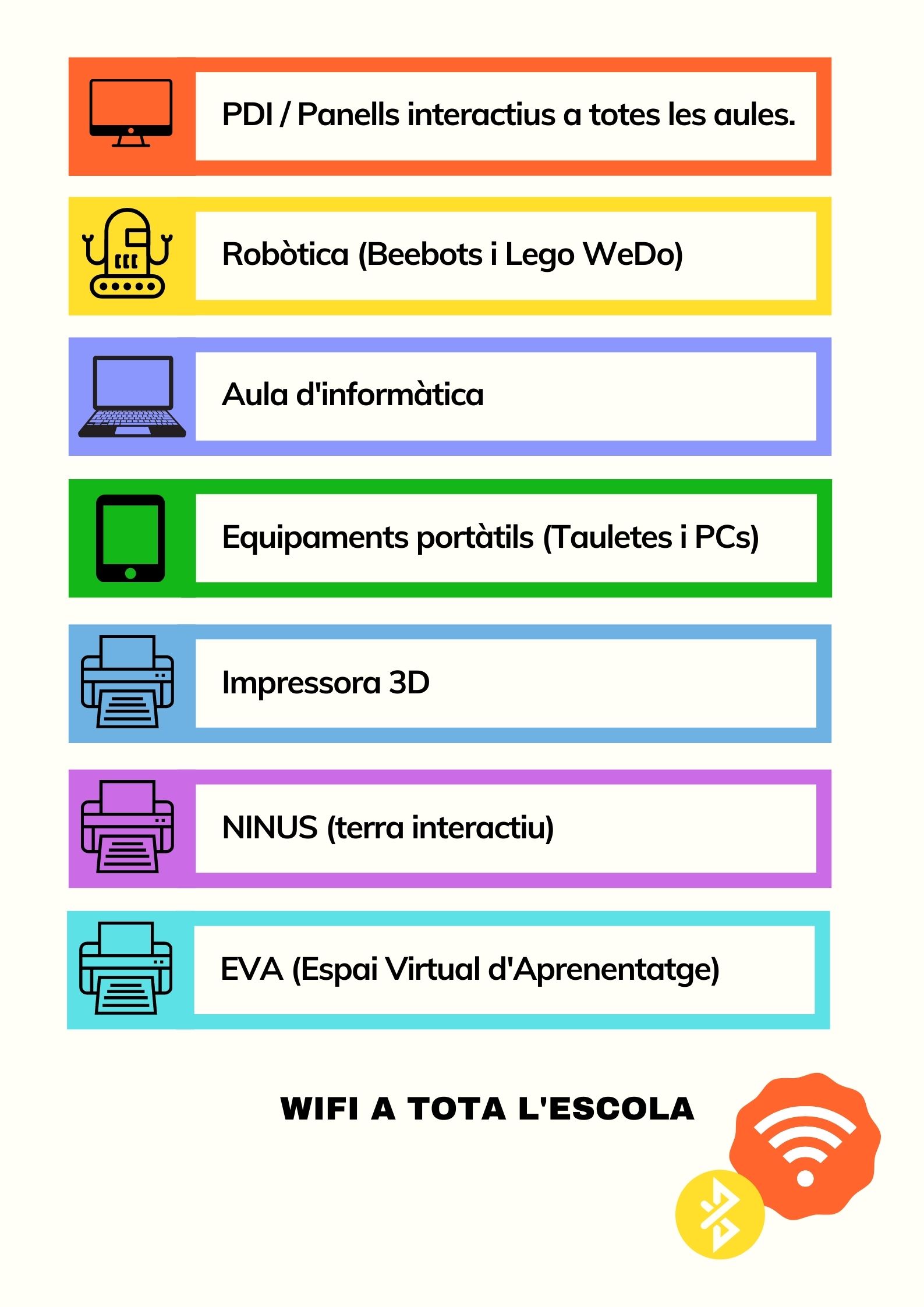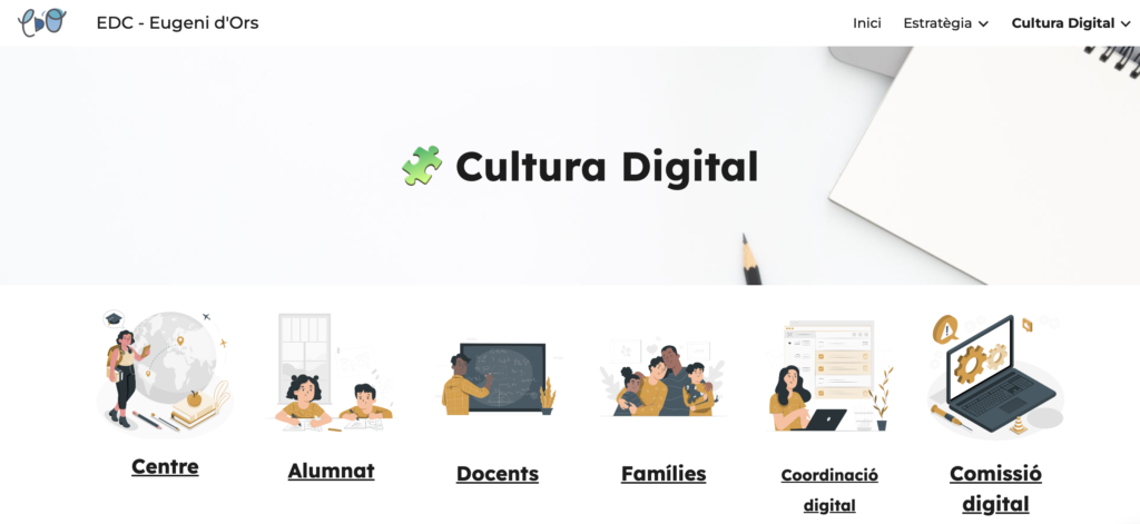 L’escola vetlla pel desplegament del Pla d’Educació Digital de Catalunya (PEDC) per tal de fomentar l’educació en competències digitals i tecnològiques en tots els nivells educatius.